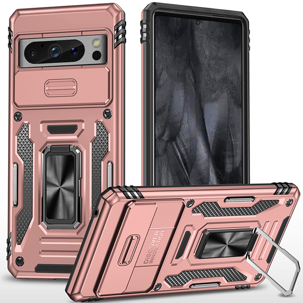 For Google Pixel 8 Pro 5G Utter Tough Metal Ring Movable Camera Window Hybrid Case Cover - Rose Gold