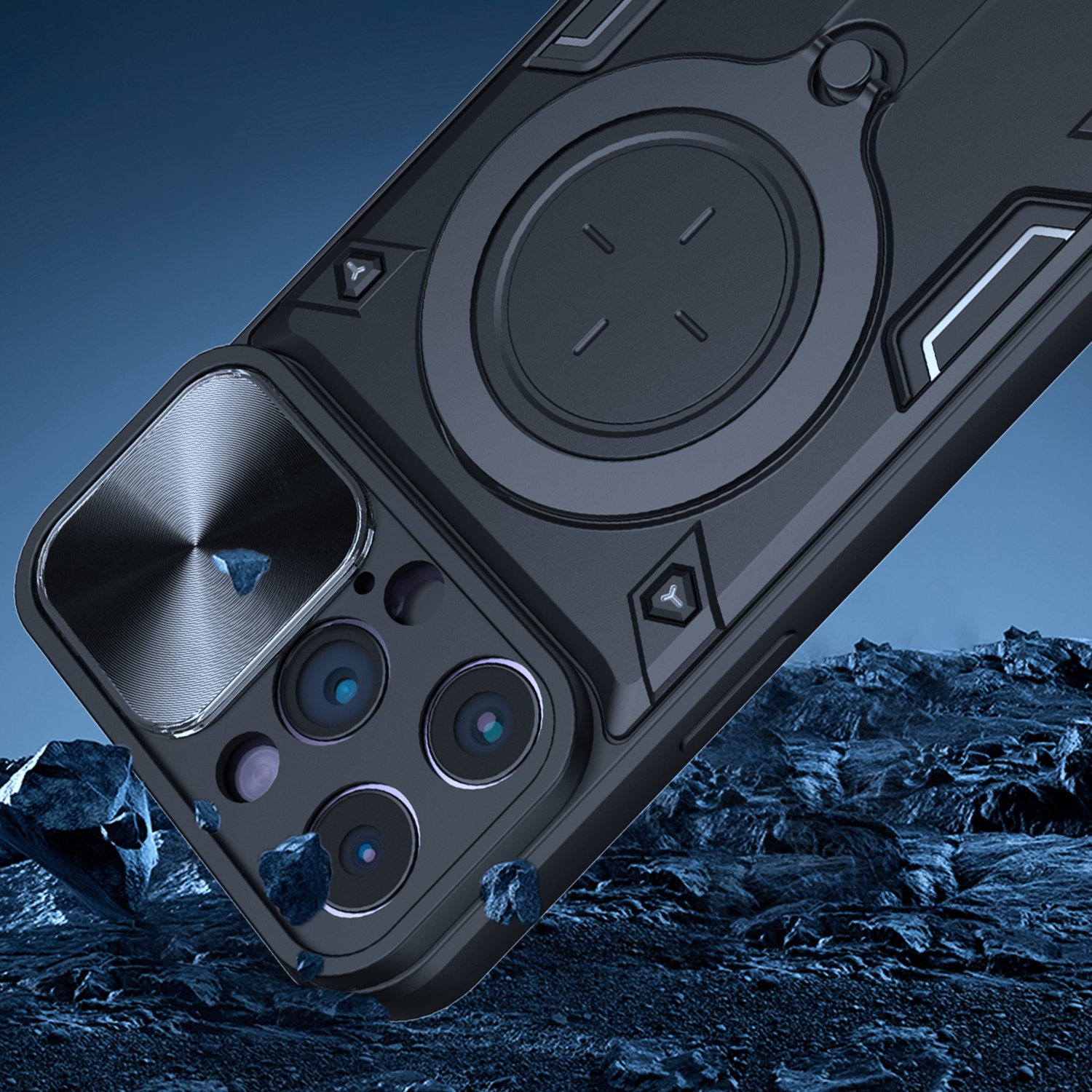 For iPhone 14 PRO MAX 6.7" Magnetic Ring Stand Classic Design FULL Camera Protection Hybrid Case - Black