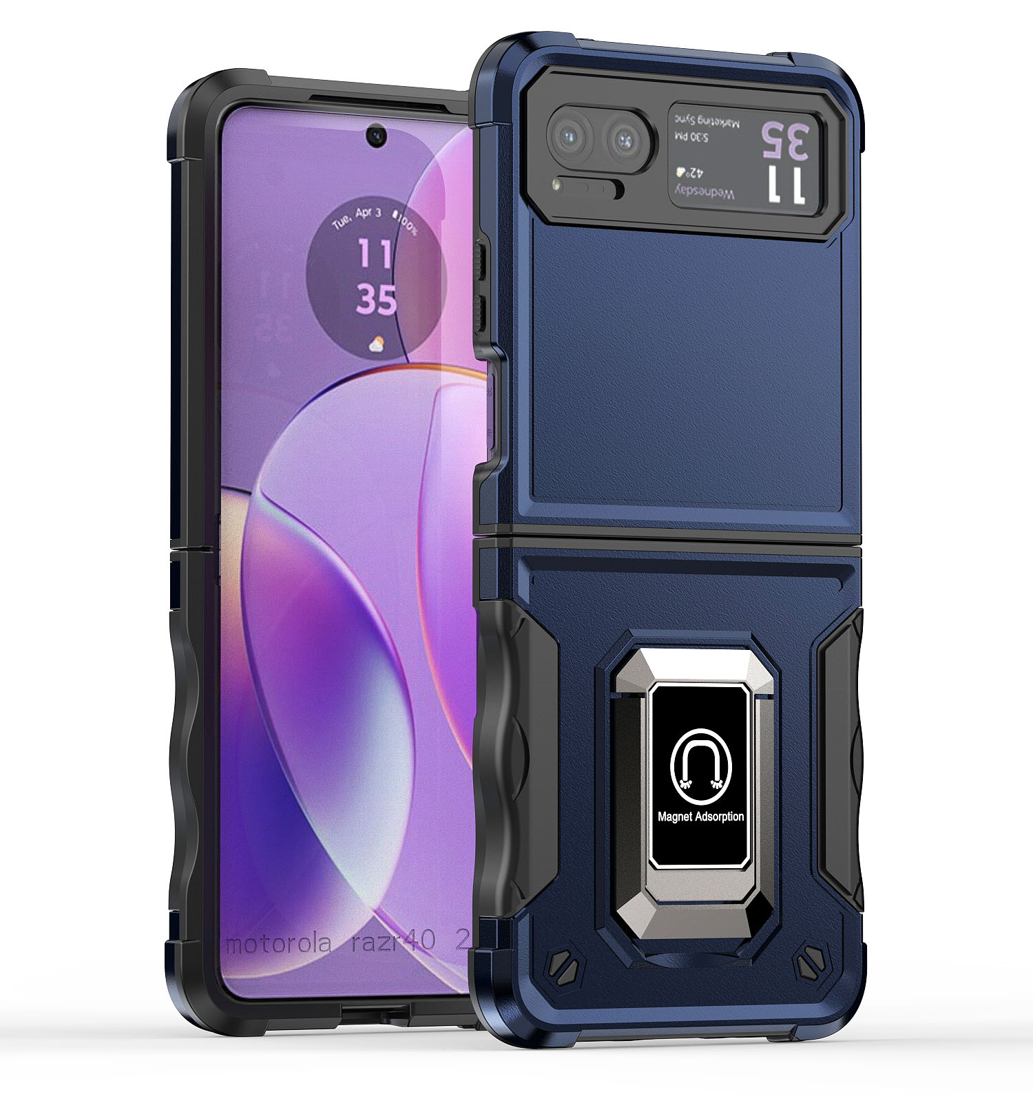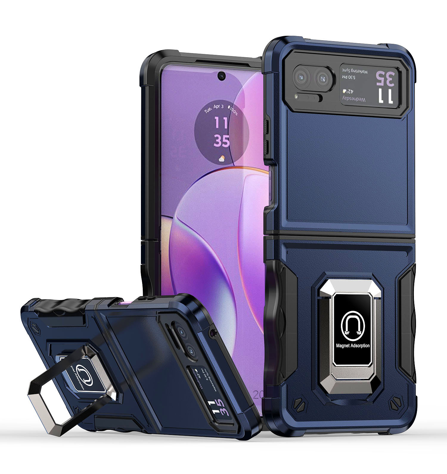 For Motorola Razr 2023 OPTIMUM Magnetic Ring Stand Hybrid Case Cover - Blue