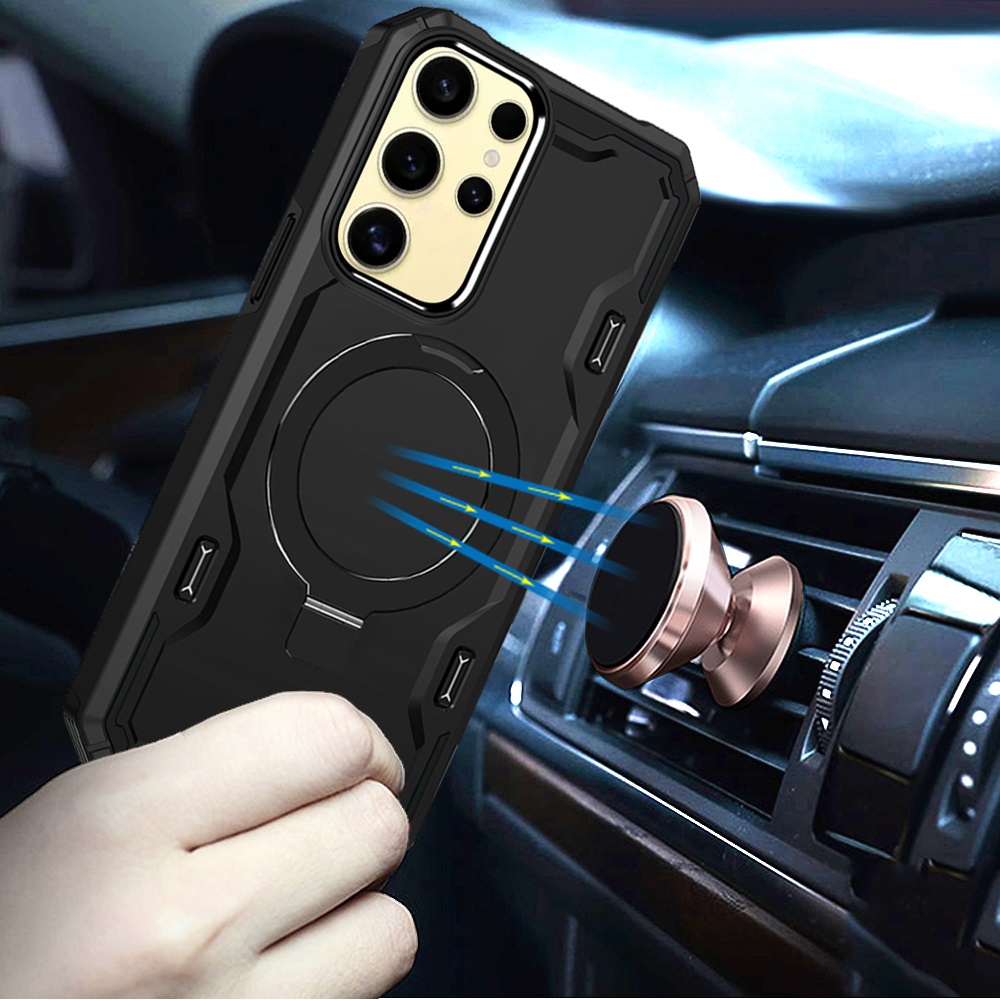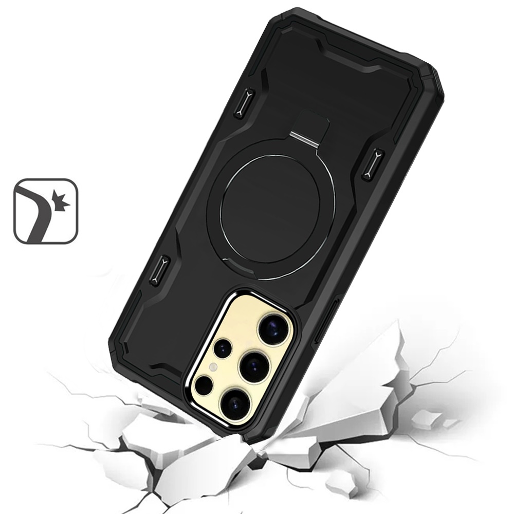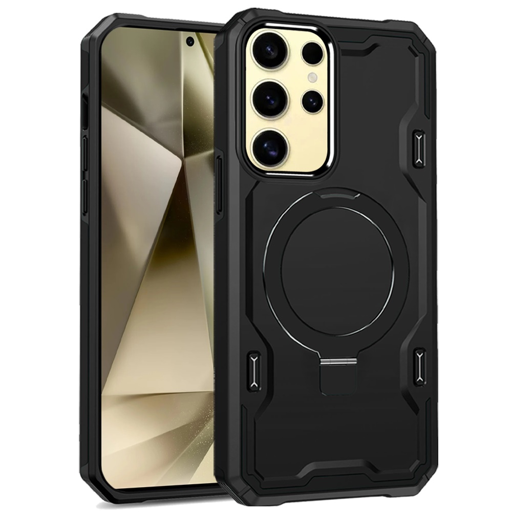 For Samsung Galaxy s24 Magnetic Ring Stand Simplistic Tough Hybrid Case Cover - Black