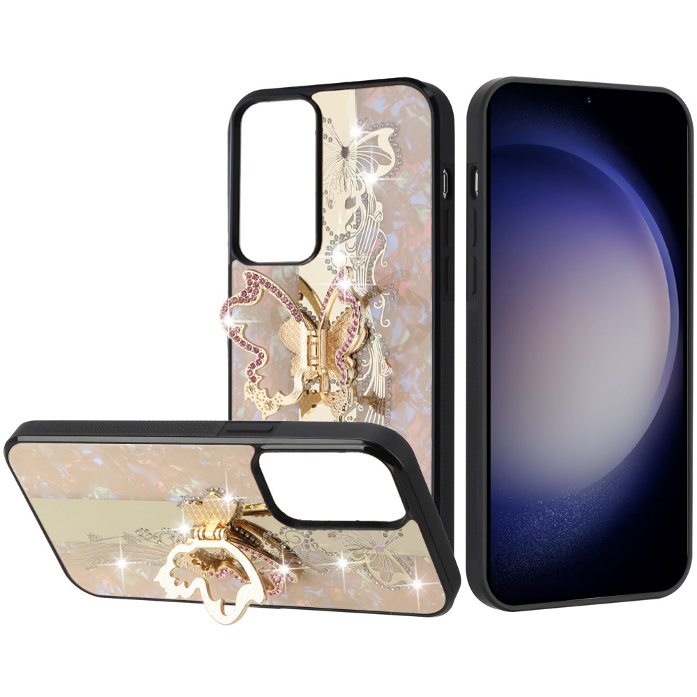 For Samsung Galaxy s24 Ultra SPLENDID Diamond Glitter Ornaments Engraving Case Cover - Enchanted Butterfly Gold