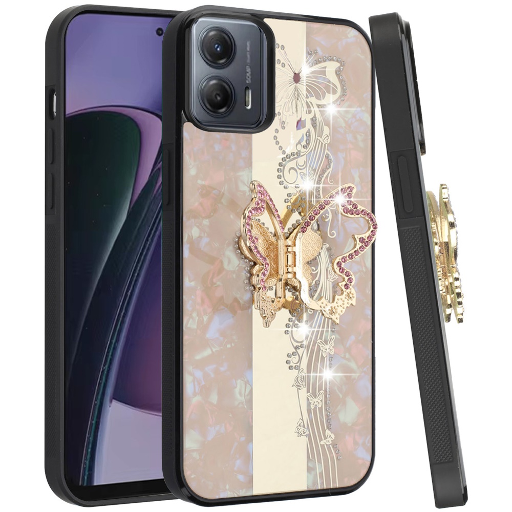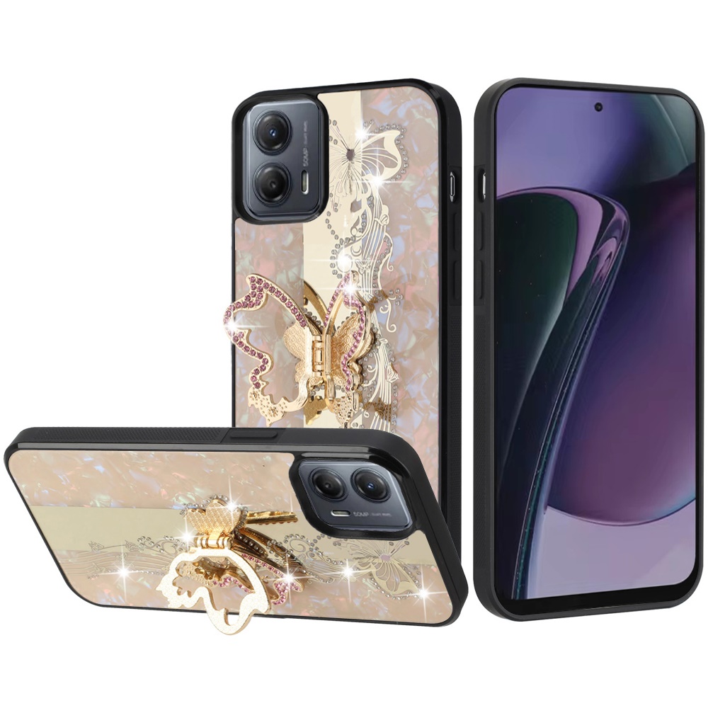 For Motorola Moto G Stylus 5G 2024 SPLENDID Diamond Glitter Ornaments Engraving Case Cover - Enchanted Butterfly Gold