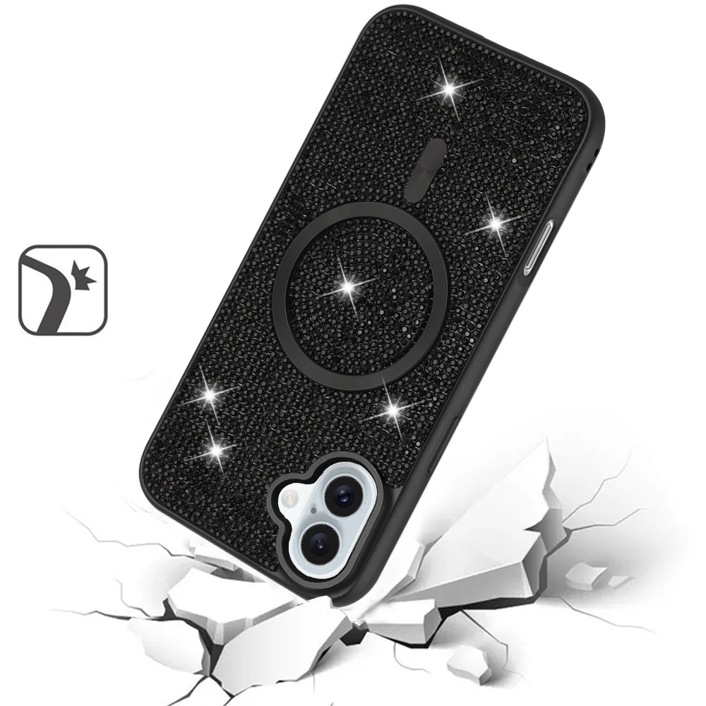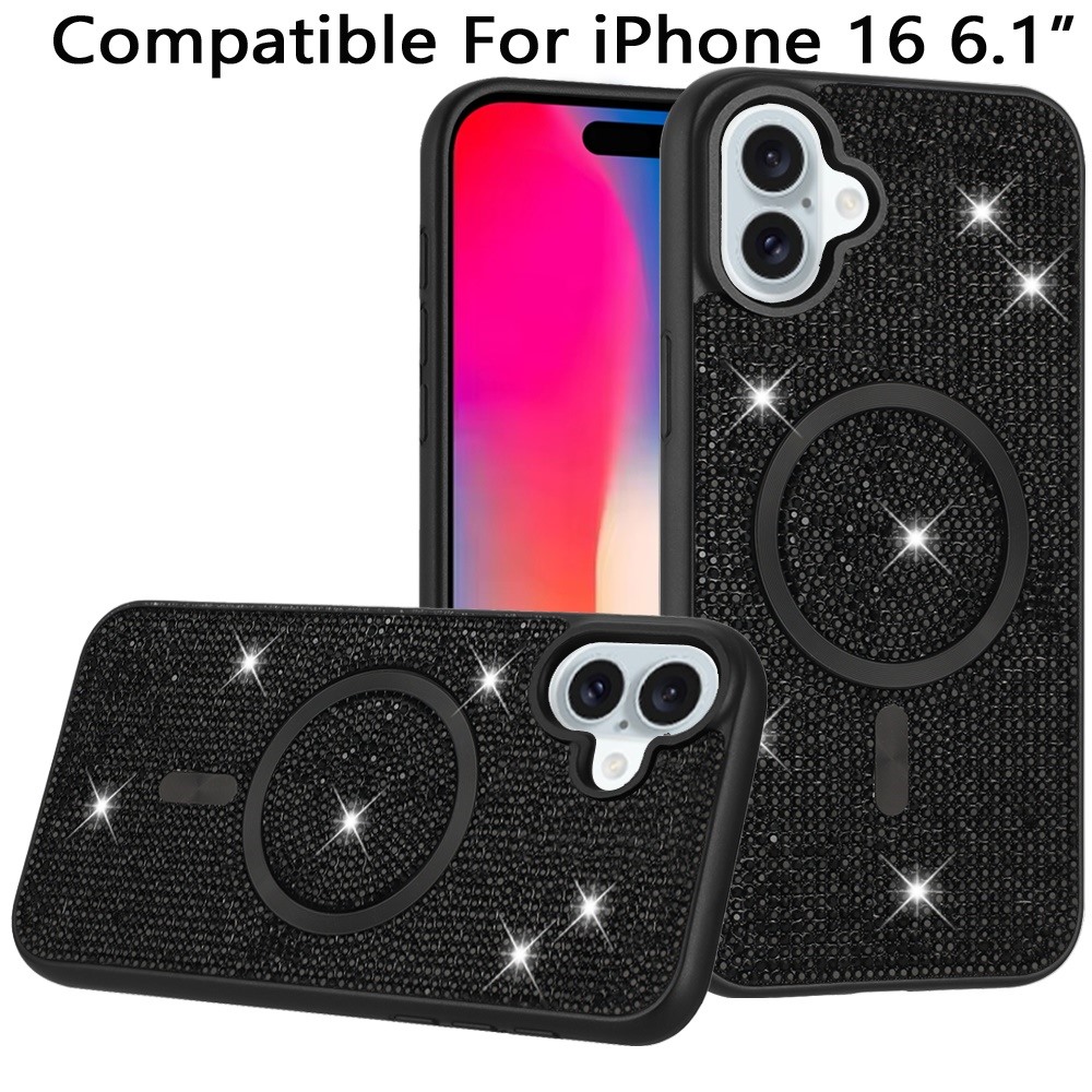 For iPhone 16 6.1 inch Diamond [Magnetic Circle] with CD Pattern Hybrid - Black