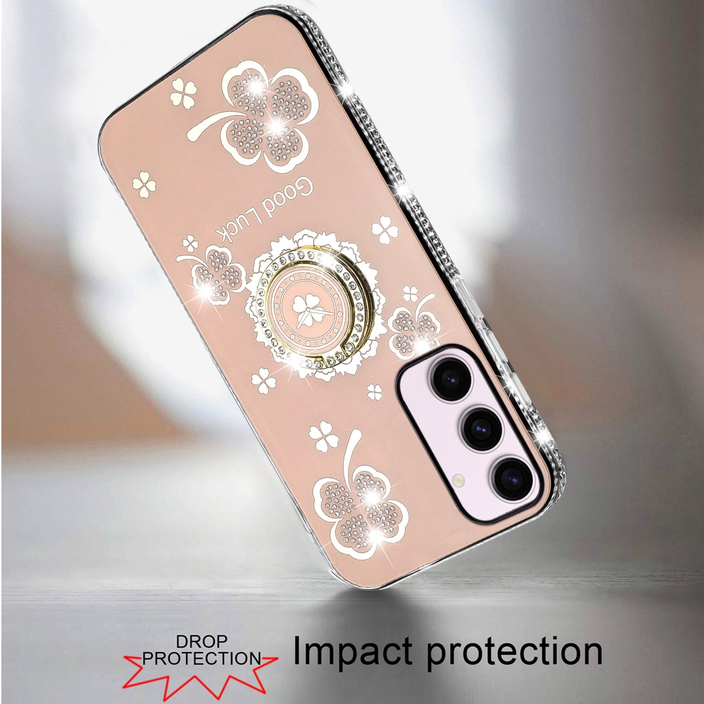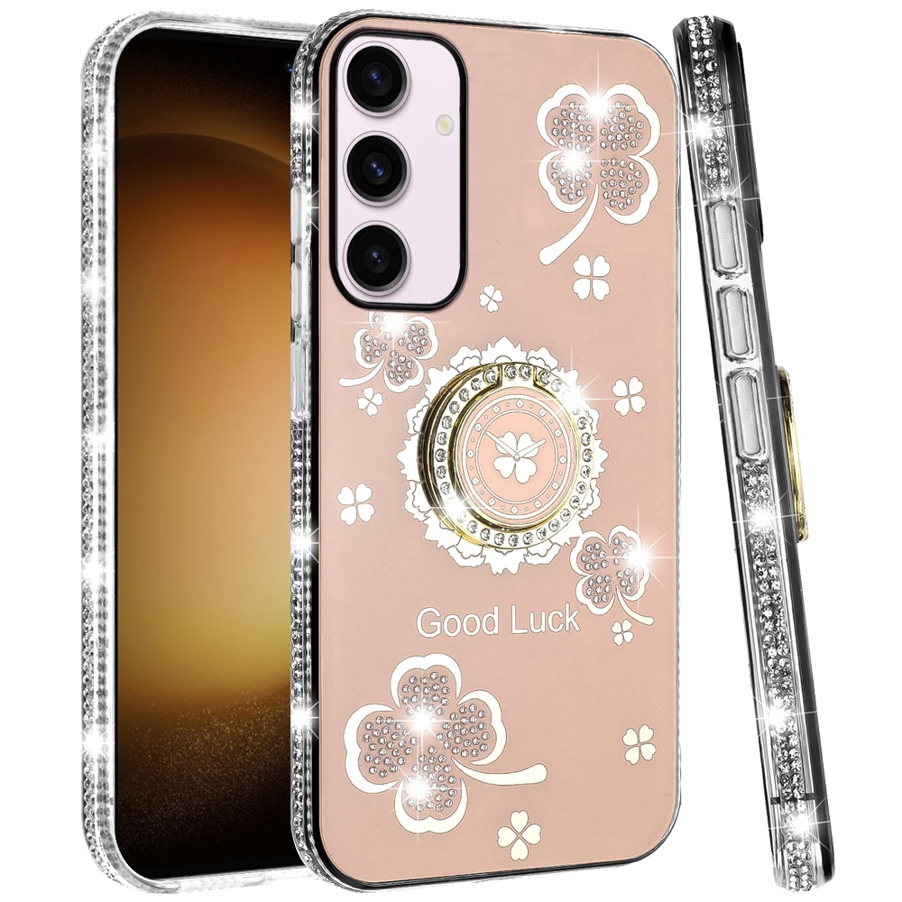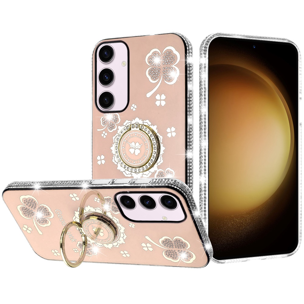 For Samsung S23 Splendid Glitter with Diamonds All Around Edges Ring Stand - Gold