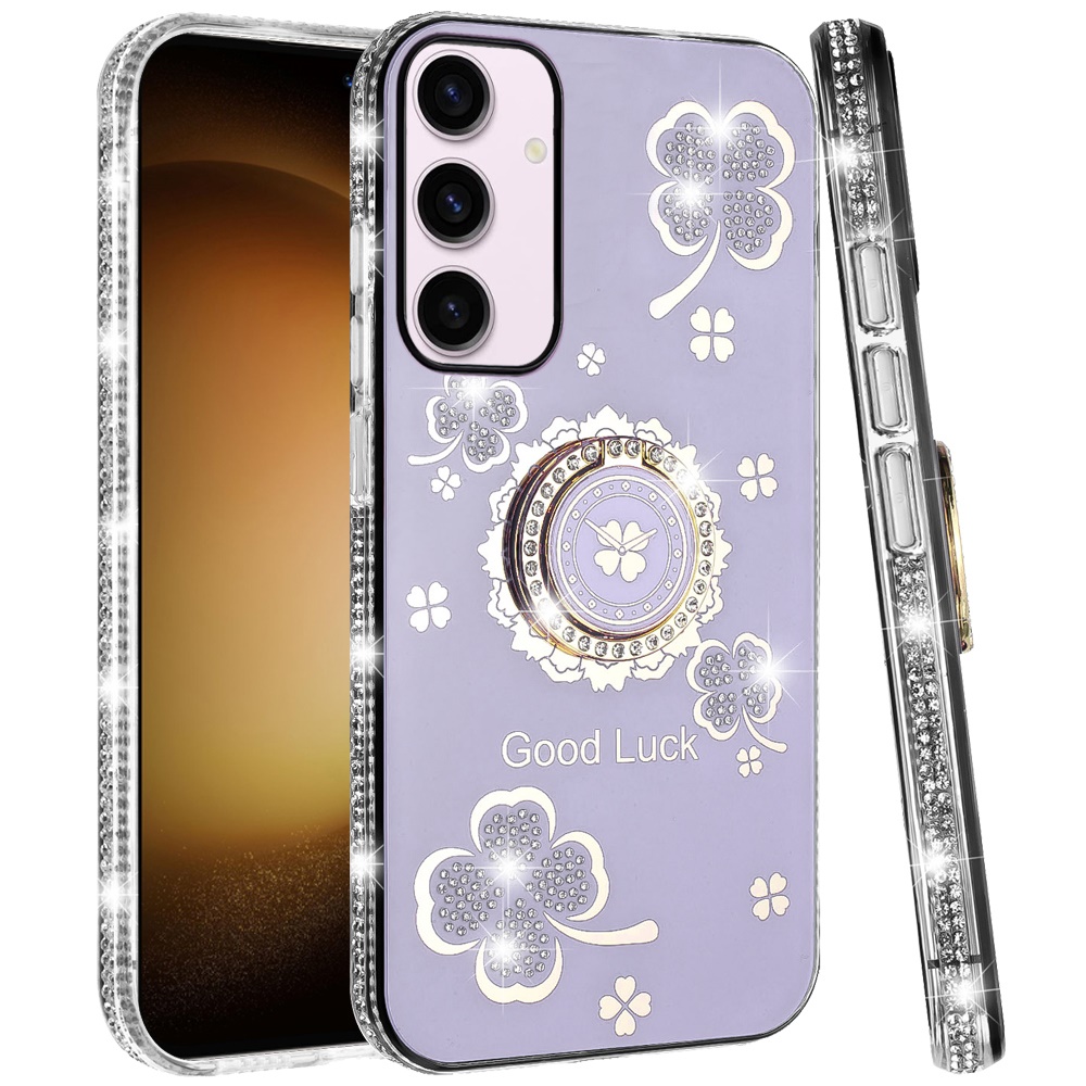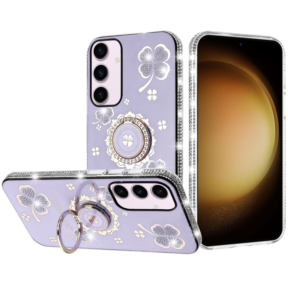 For Samsung S23 Splendid Glitter with Diamonds All Around Edges Ring Stand - Purple