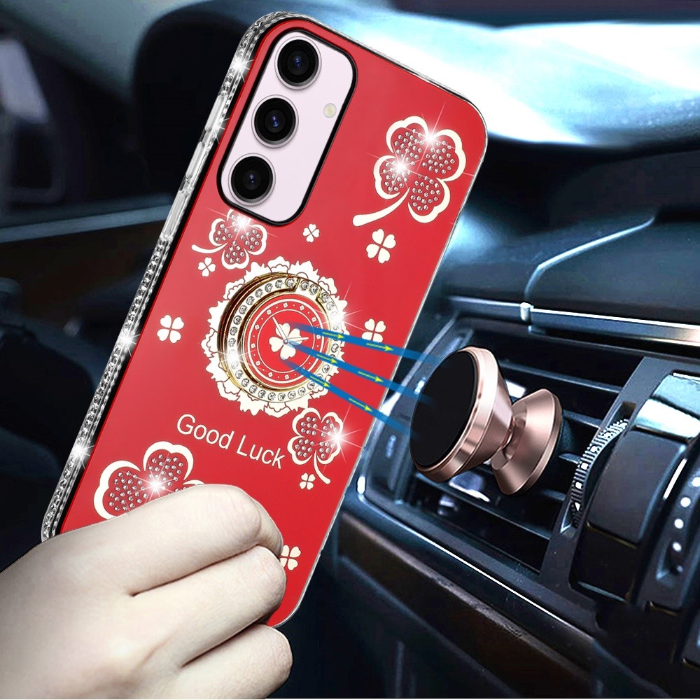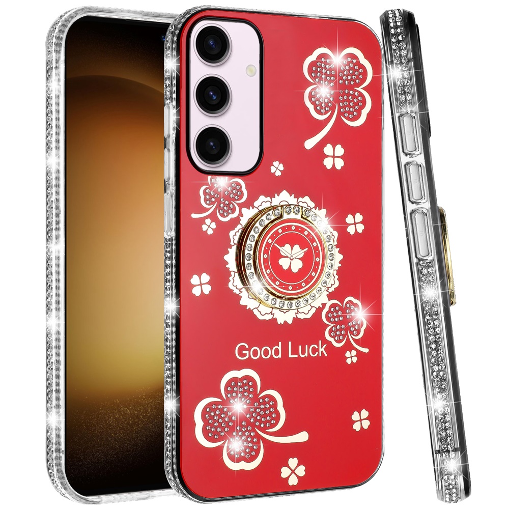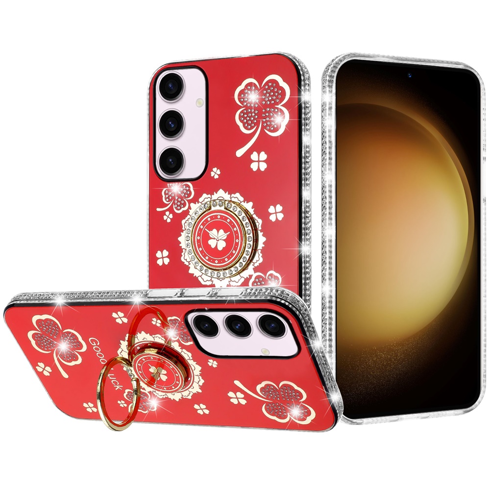 For Samsung S23 Splendid Glitter with Diamonds All Around Edges Ring Stand - Red