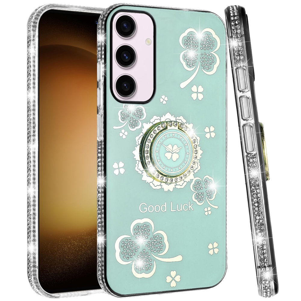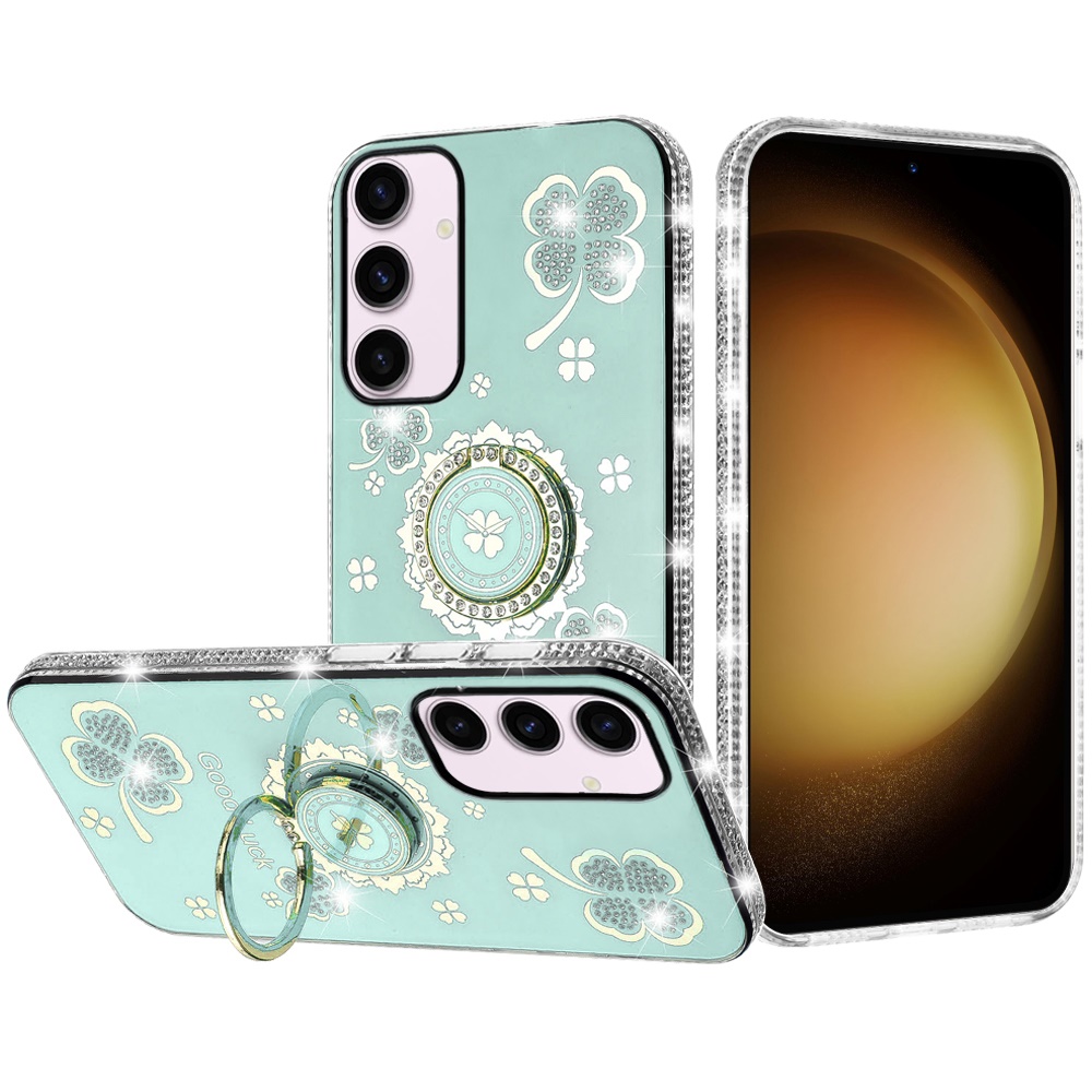 For Samsung S23 Splendid Glitter with Diamonds All Around Edges Ring Stand - Teal
