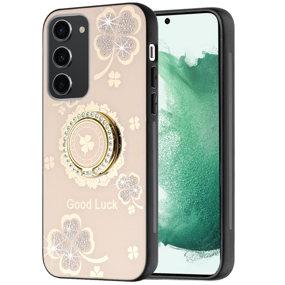 For Samsung Galaxy S22 Plus SPLENDID Diamond Glitter Ornaments Engraving Case Cover - Good Luck Floral Gold