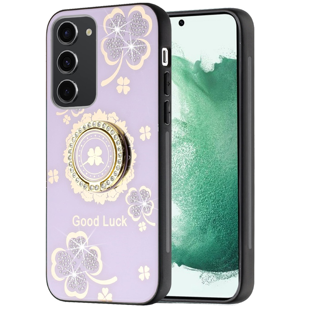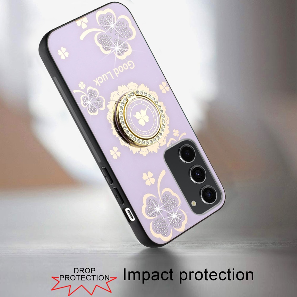 For Samsung Galaxy S22 Plus SPLENDID Diamond Glitter Ornaments Engraving Case Cover - Good Luck Floral Purple