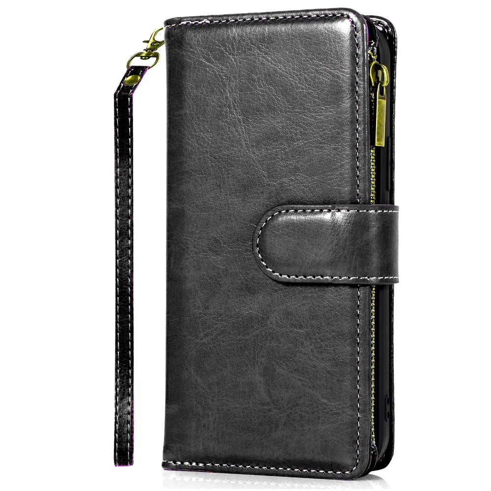 For Samsung Galaxy A36 / A56 Luxury Wallet Card ID Zipper Money Holder Case Cover - Black