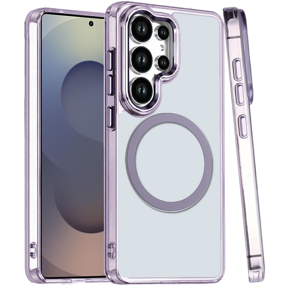 For Samsung Galaxy s25 Ultra Magnetic Circle Ring Transparent Premium Acrylic with Metal Buttons & Camera Raised Lip - Light Purple