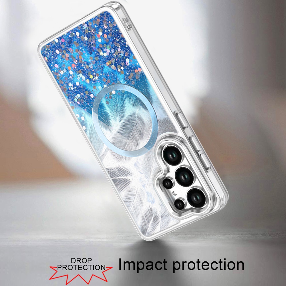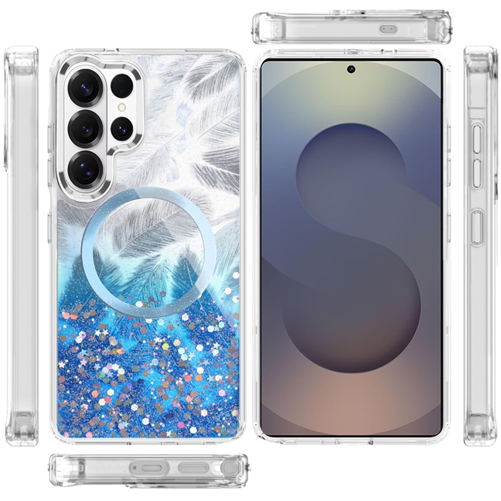 For Samsung Galaxy s25 Ultra Epoxy Glitter Shimmer [Magnetic Circle] Hybrid Case - Dark Blue