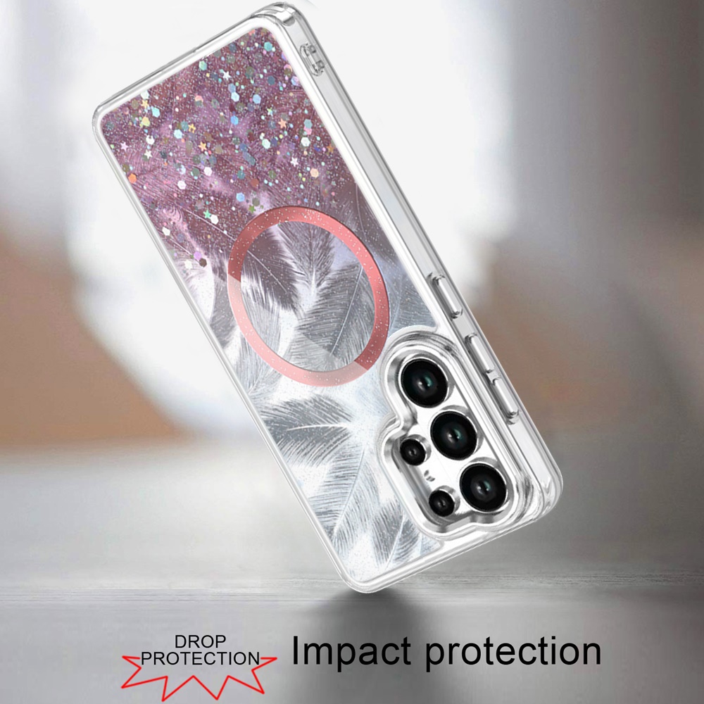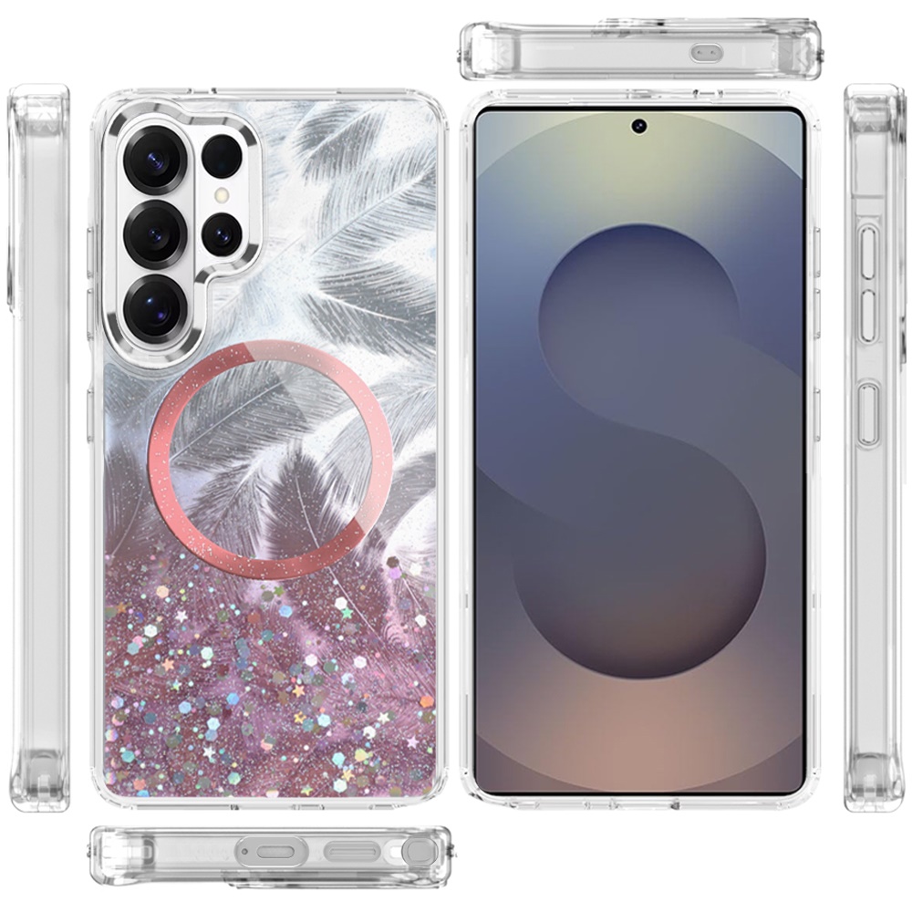 For Samsung Galaxy s25 Ultra Epoxy Glitter Shimmer [Magnetic Circle] Hybrid Case - Light Pink