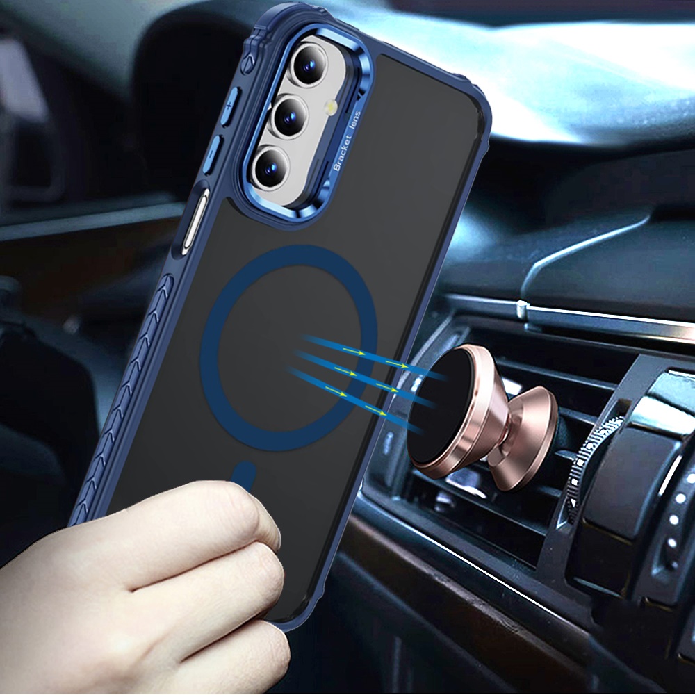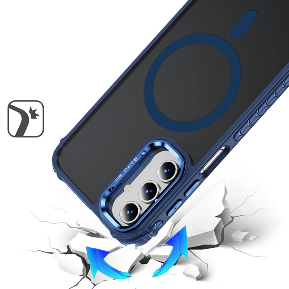 For Samsung A16 5G ShatterProof HQ Metal Camera Ring [Magnetic Circle] with Colorful Edged Bar Case - Dark Blue