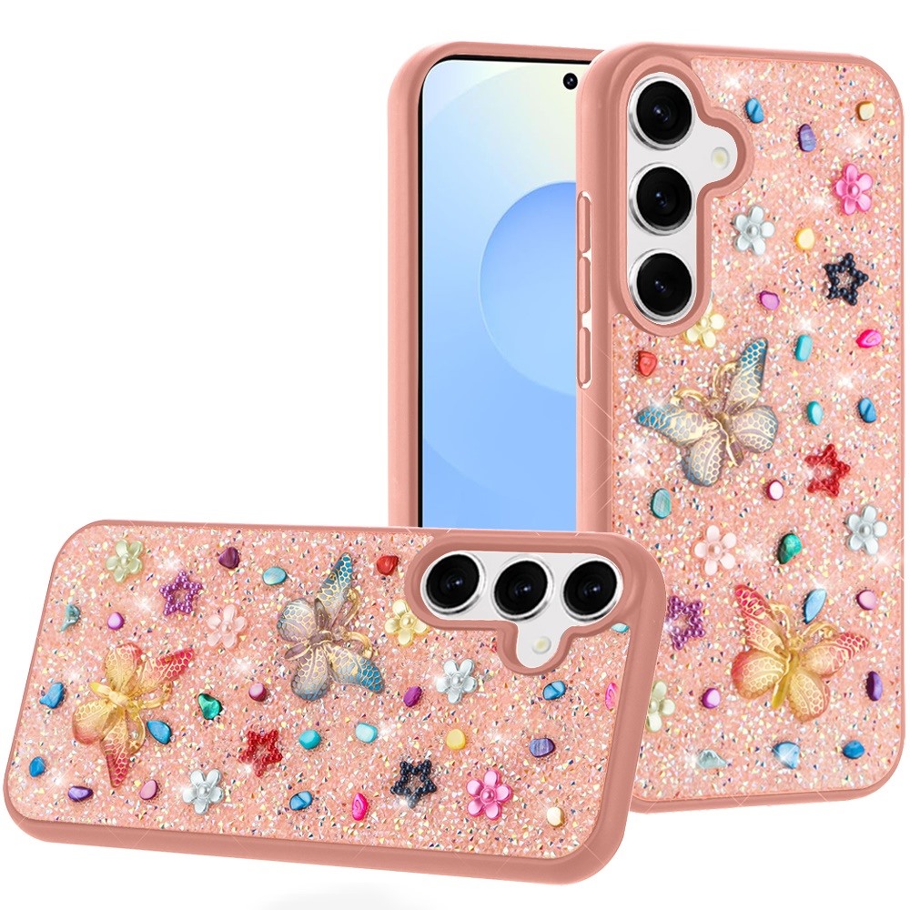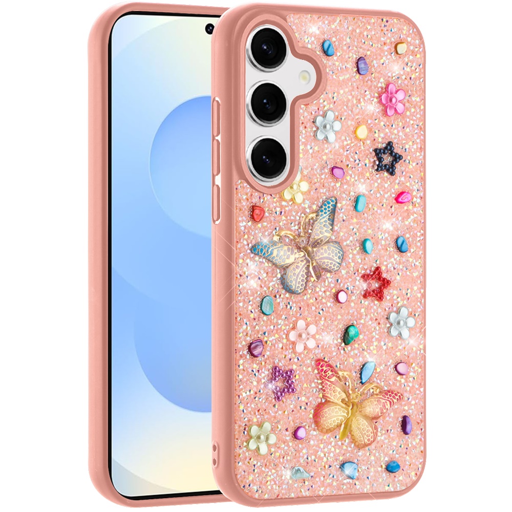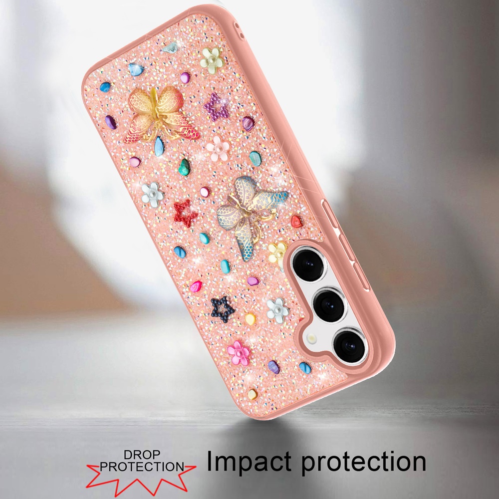 For Samsung s25 Plus/s24 Plus Butterfly Ornaments Diamond Bling Glitter Hybrid Case - Light Pink