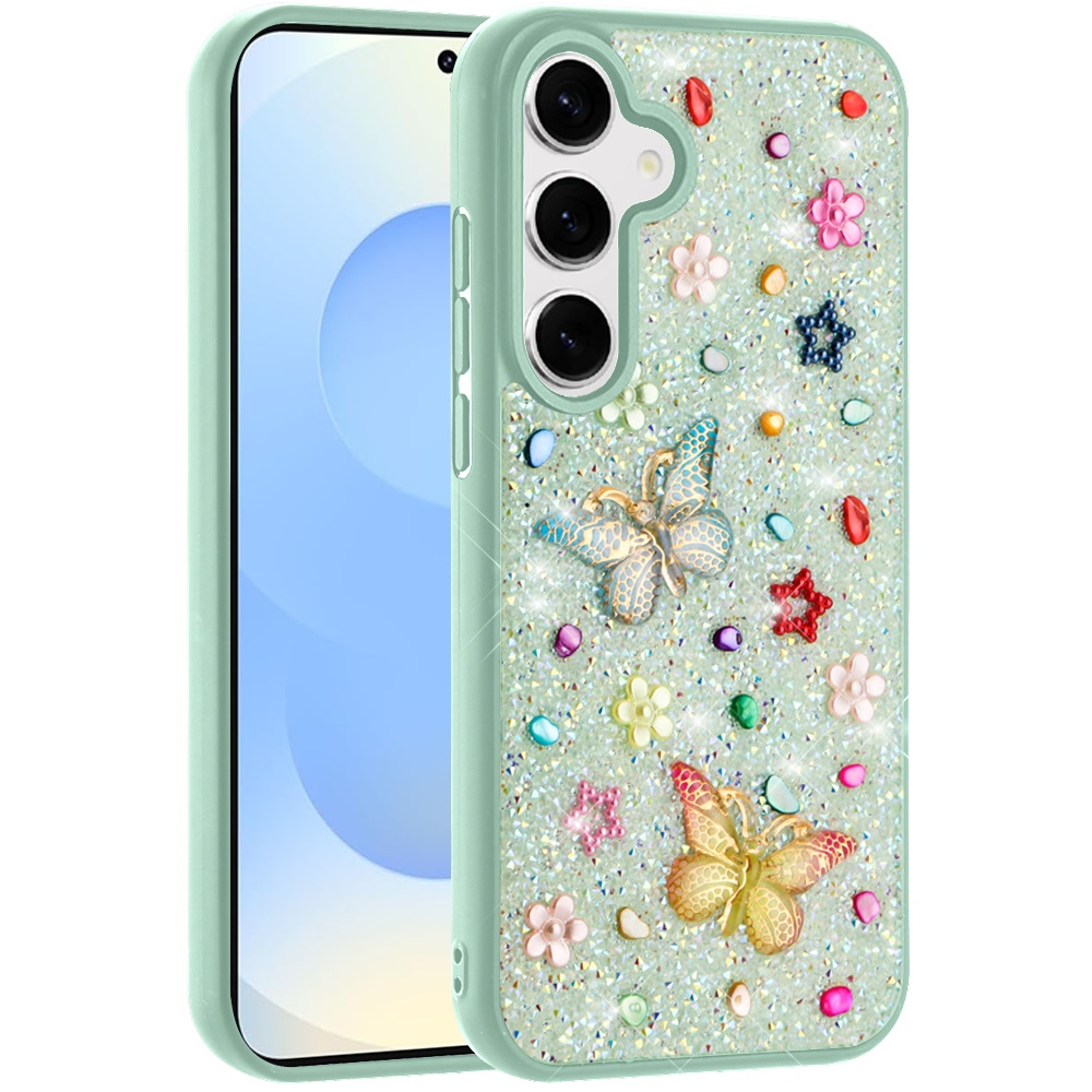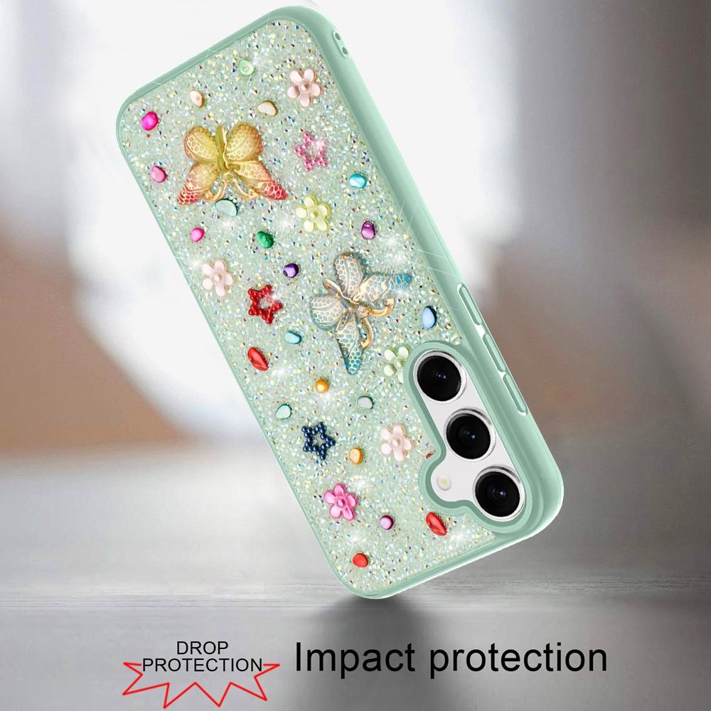 For Samsung s25 Plus/s24 Plus Butterfly Ornaments Diamond Bling Glitter Hybrid Case - Teal