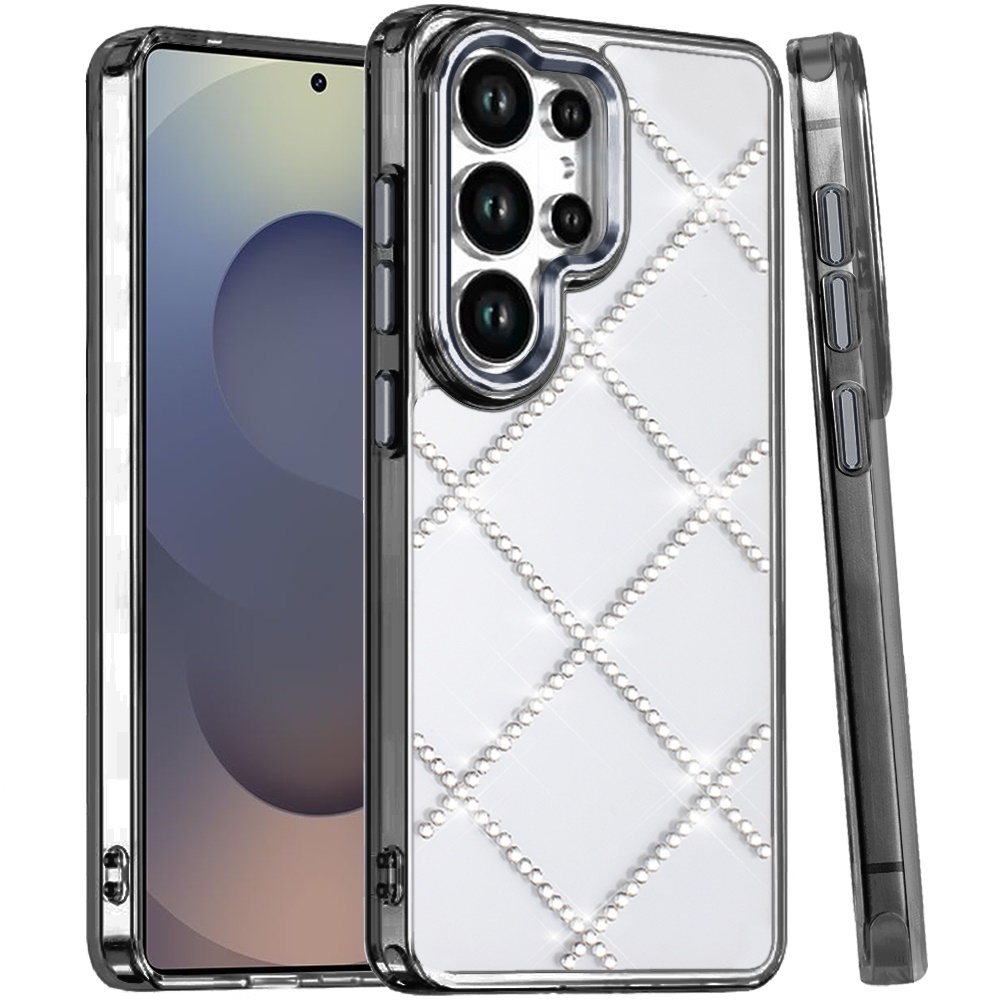 For Samsung s25 Ultra Gem Glitter Diamond Transparent Hard Colorful TPU Hybrid Case - Black