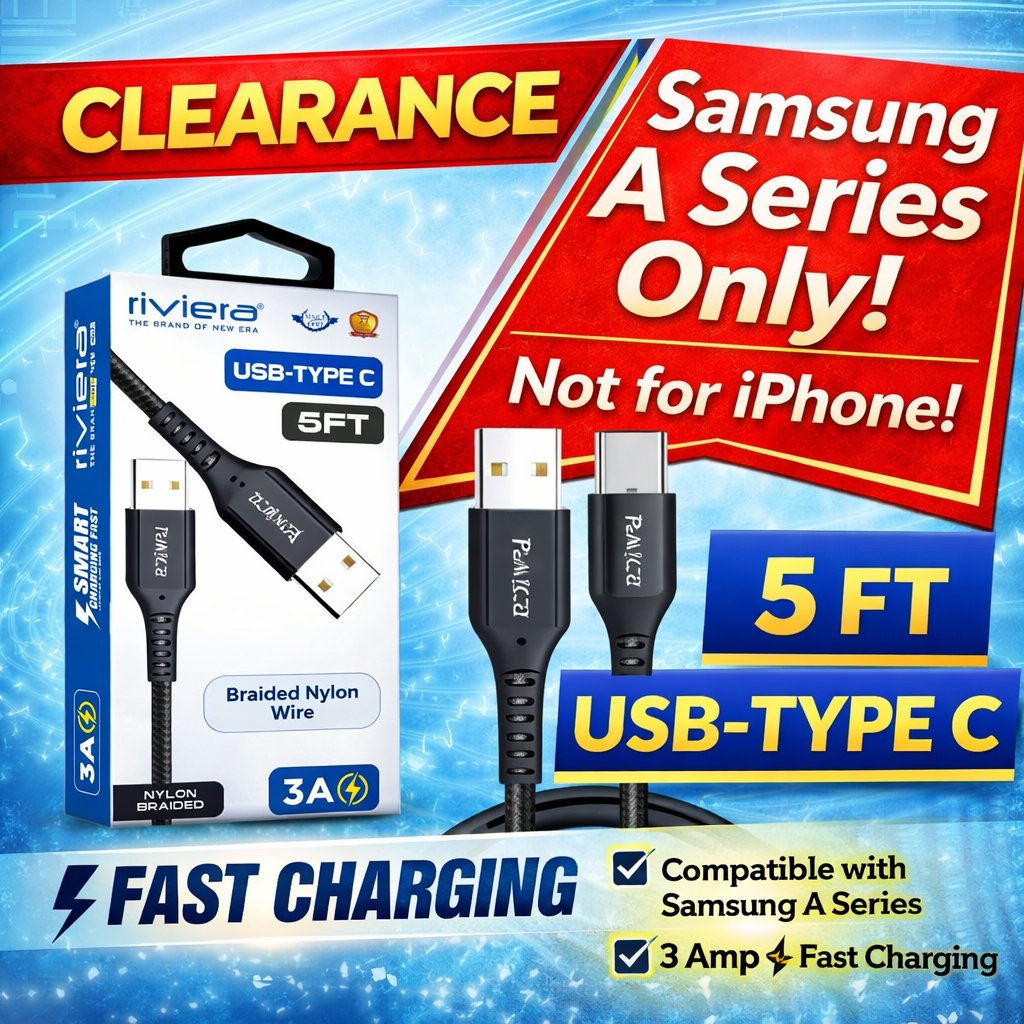 CLEARANCE [Samsung A Series Only] [Not for iPhones] - 5FT [USB - Type C (PD)] - Black w/ Black Shell (62)
