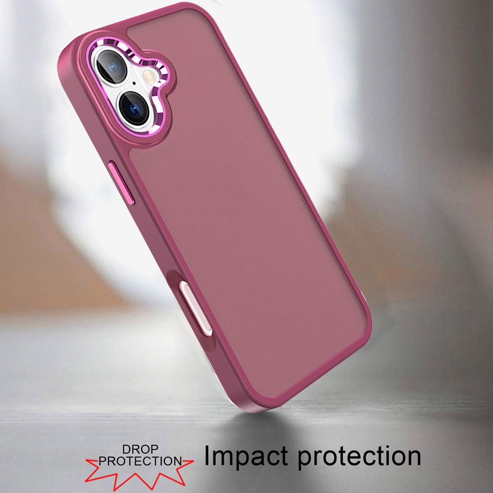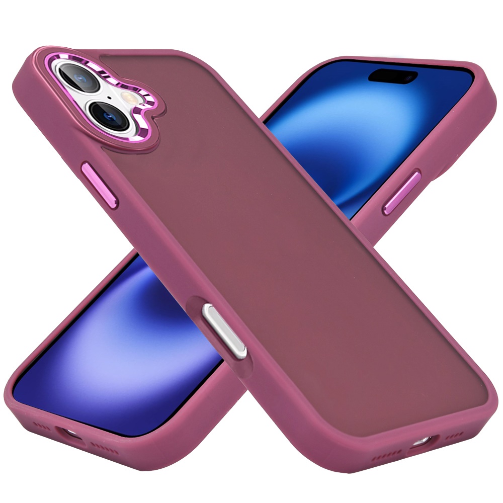For iPhone 17 Polished Oil Thick Acrylic Metal Button Hybrid Case Cover - Burgundy