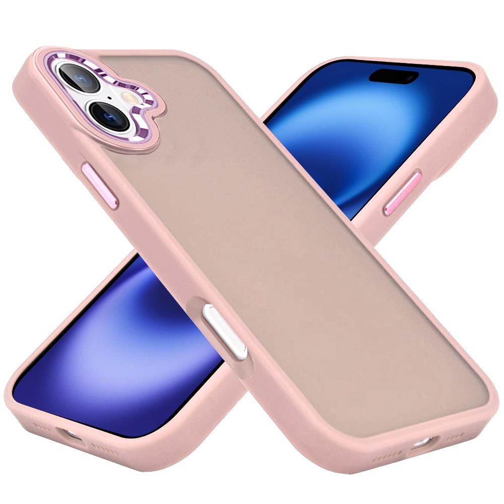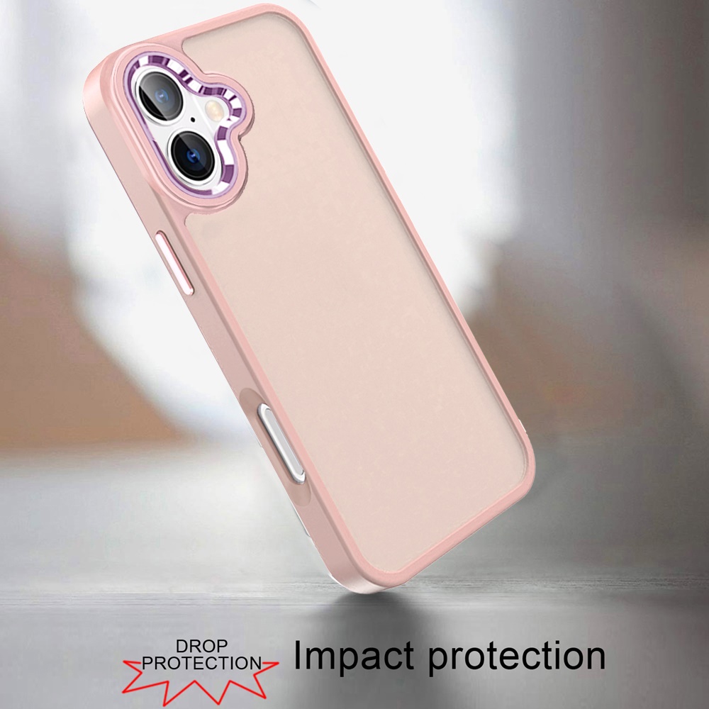For iPhone 17 Polished Oil Thick Acrylic Metal Button Hybrid Case Cover - Light Pink