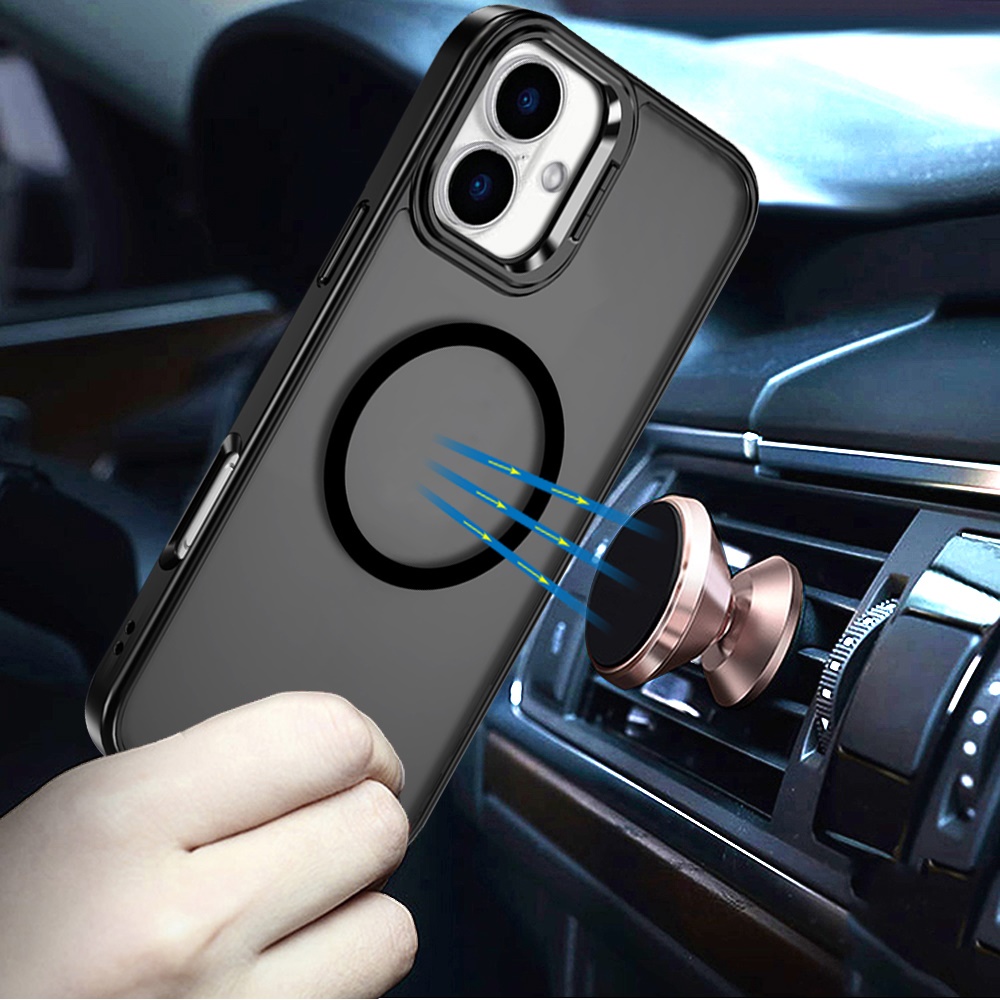 For iPhone 17 Fearless Tough HQ Metallic Hybrid with Camera Ring Stand [Magnetic Circle] Case - Black