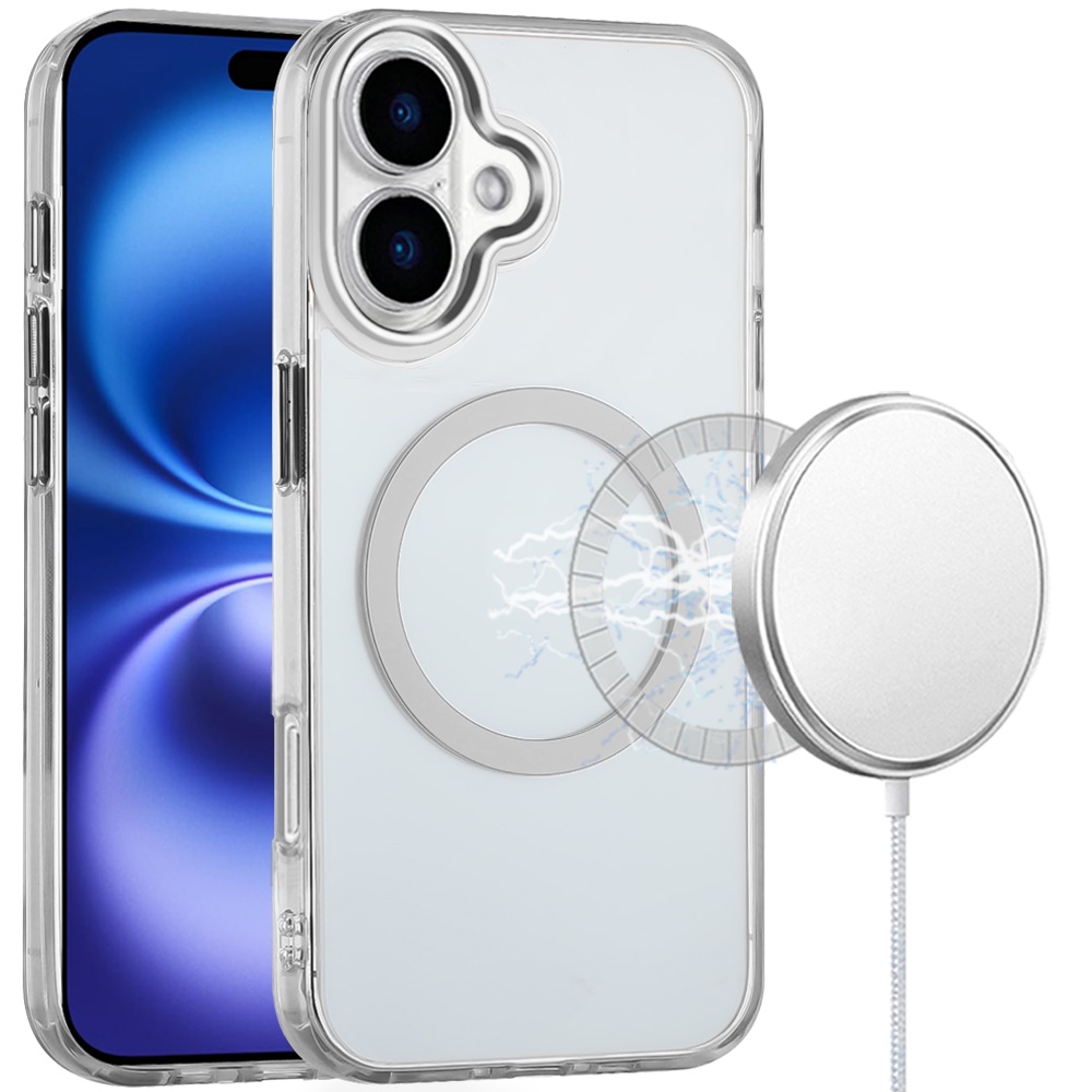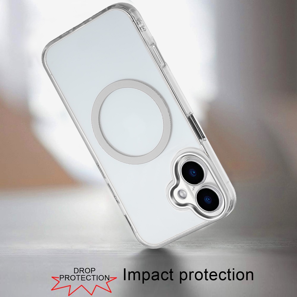 For iPhone 17 Magnetic Circle Ring Transparent Premium Acrylic with Metal Buttons & Camera Raised Lip - Clear