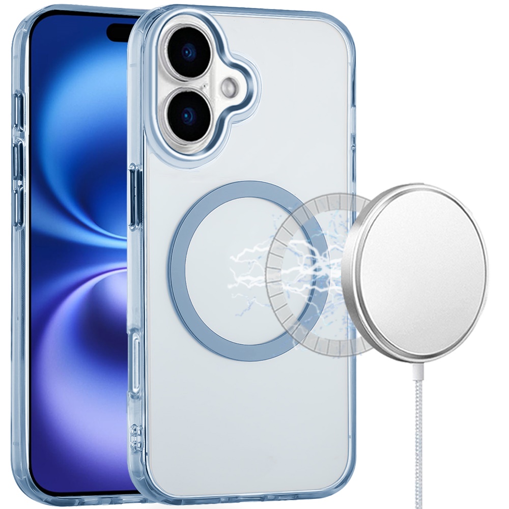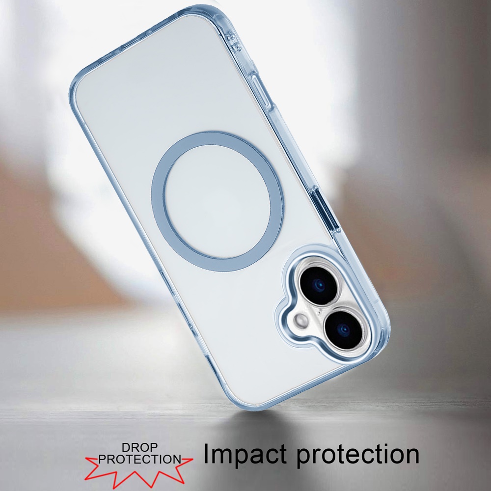 For iPhone 17 Magnetic Circle Ring Transparent Premium Acrylic with Metal Buttons & Camera Raised Lip - Light Blue