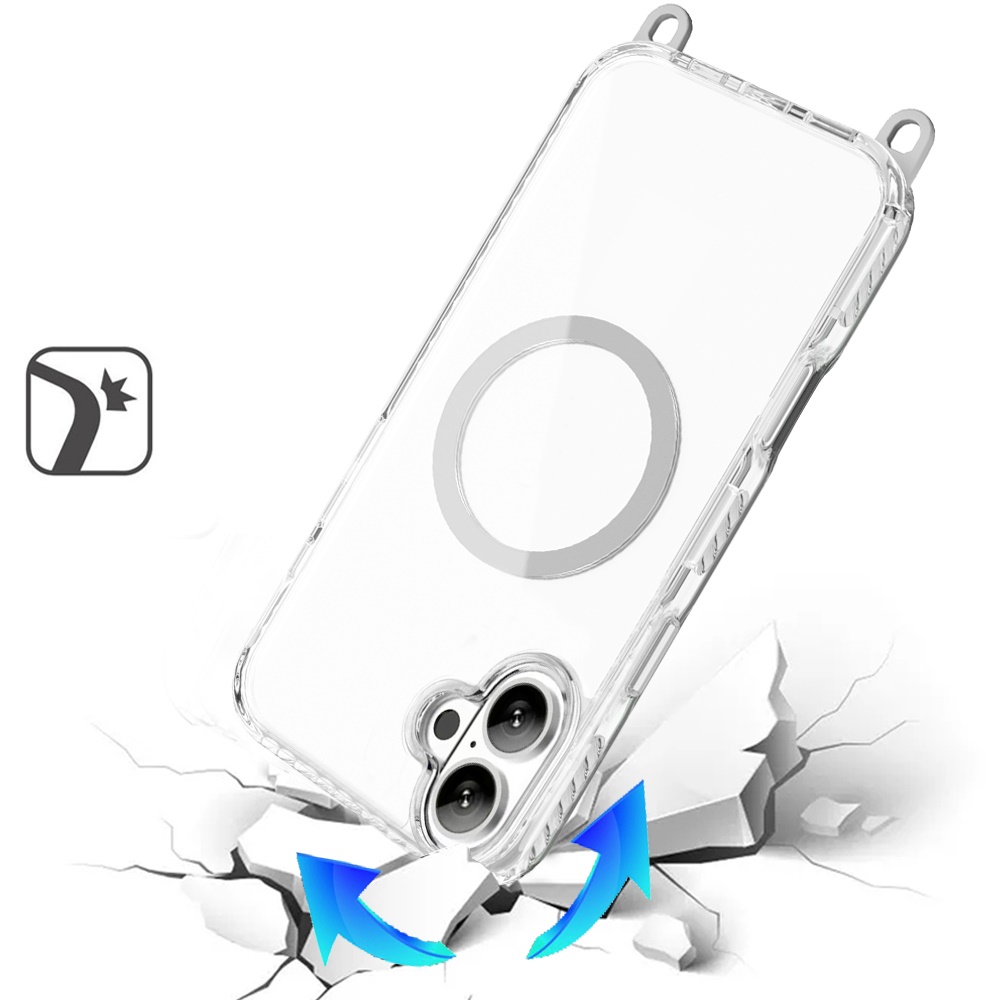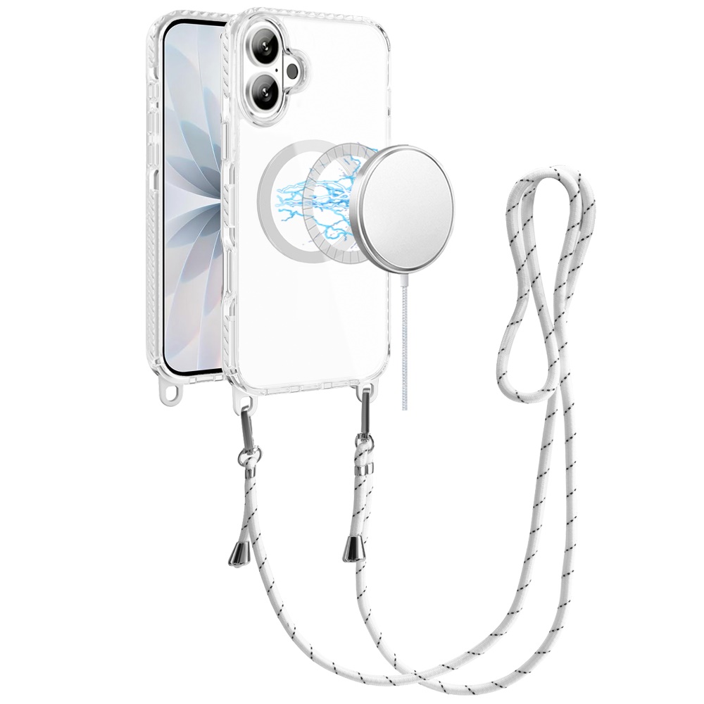 For iPhone 17 Transparent HQ Clear Line Design Edged Hybrid [Magnetic Circle] with Matching Lanyard - White