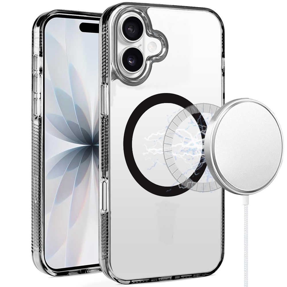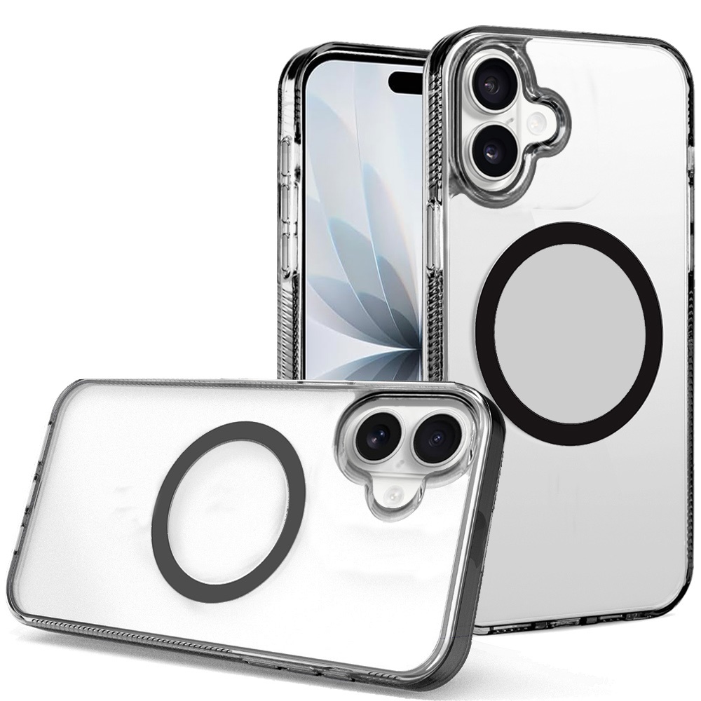 For iPhone 17 PURE Transparent [Magnetic Circle] High Quality Ultra Thick Hybrid - Black