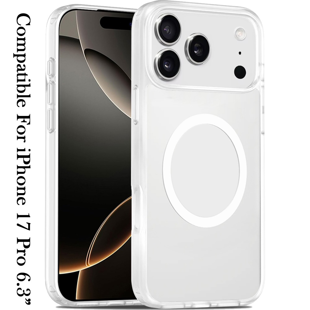 For iPhone 17 Pro [Magnetic Circle] Smooth Safe Matte Feel Hybrid Case - Clear