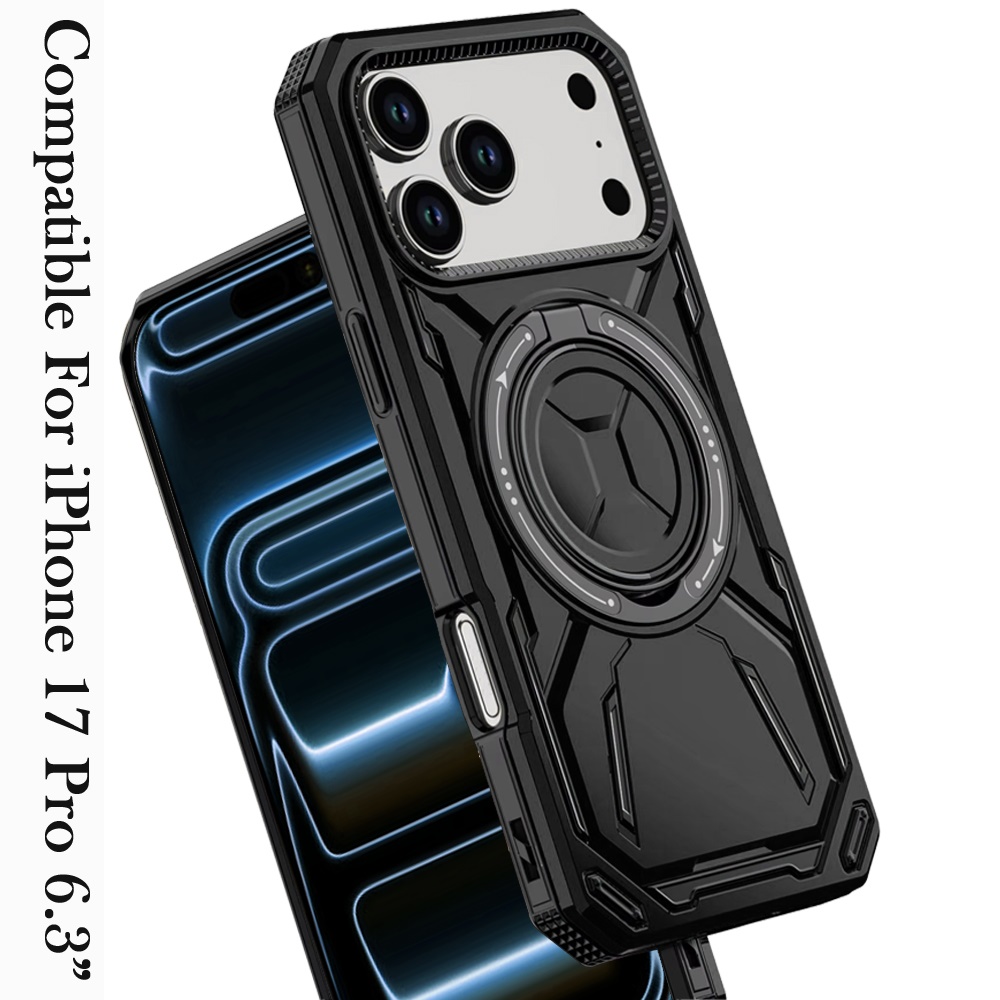 For iPhone 17 Pro Loop Hybrid with [Magnetic Ring Circle] 360 degrees Rotational Kickstand Case Cover - Black