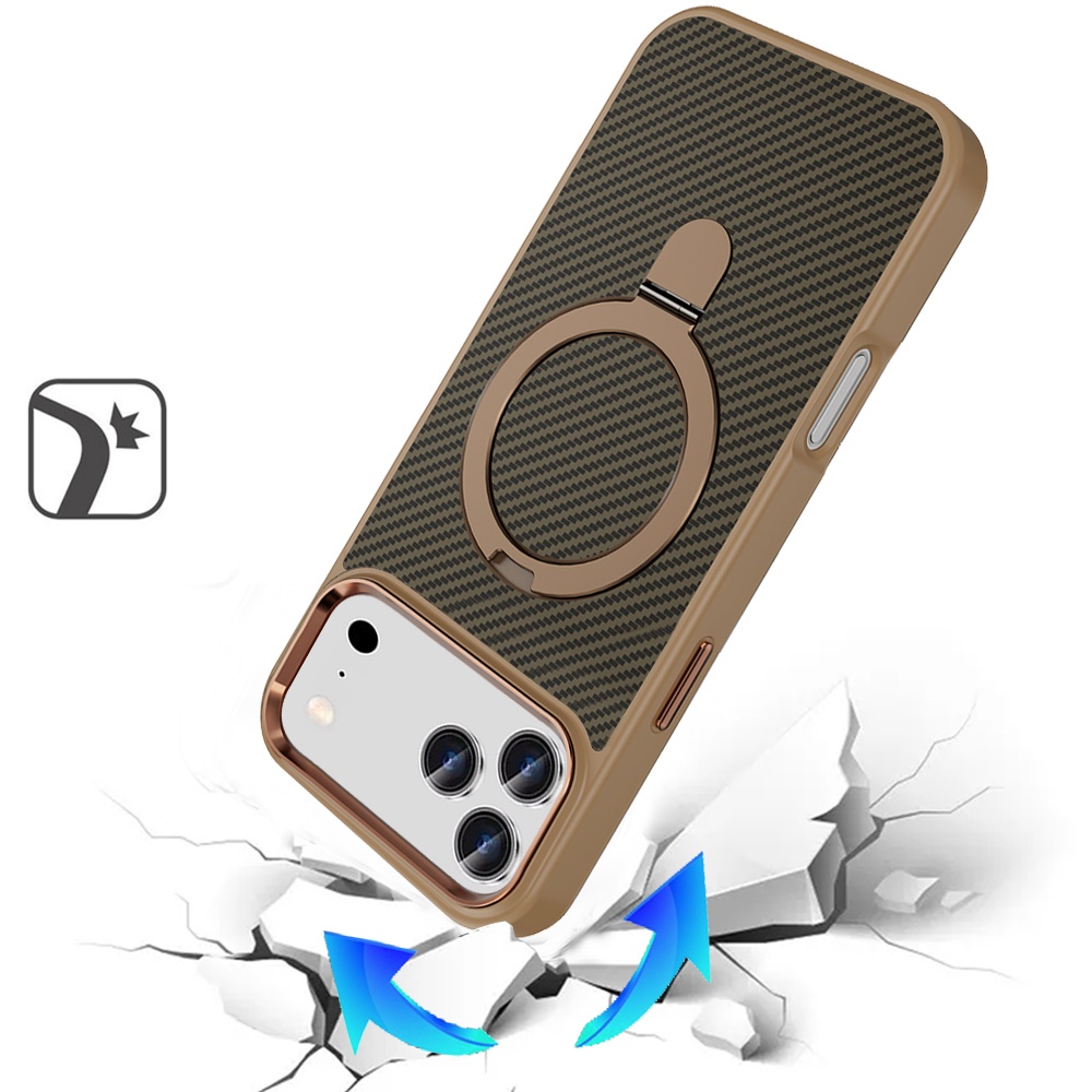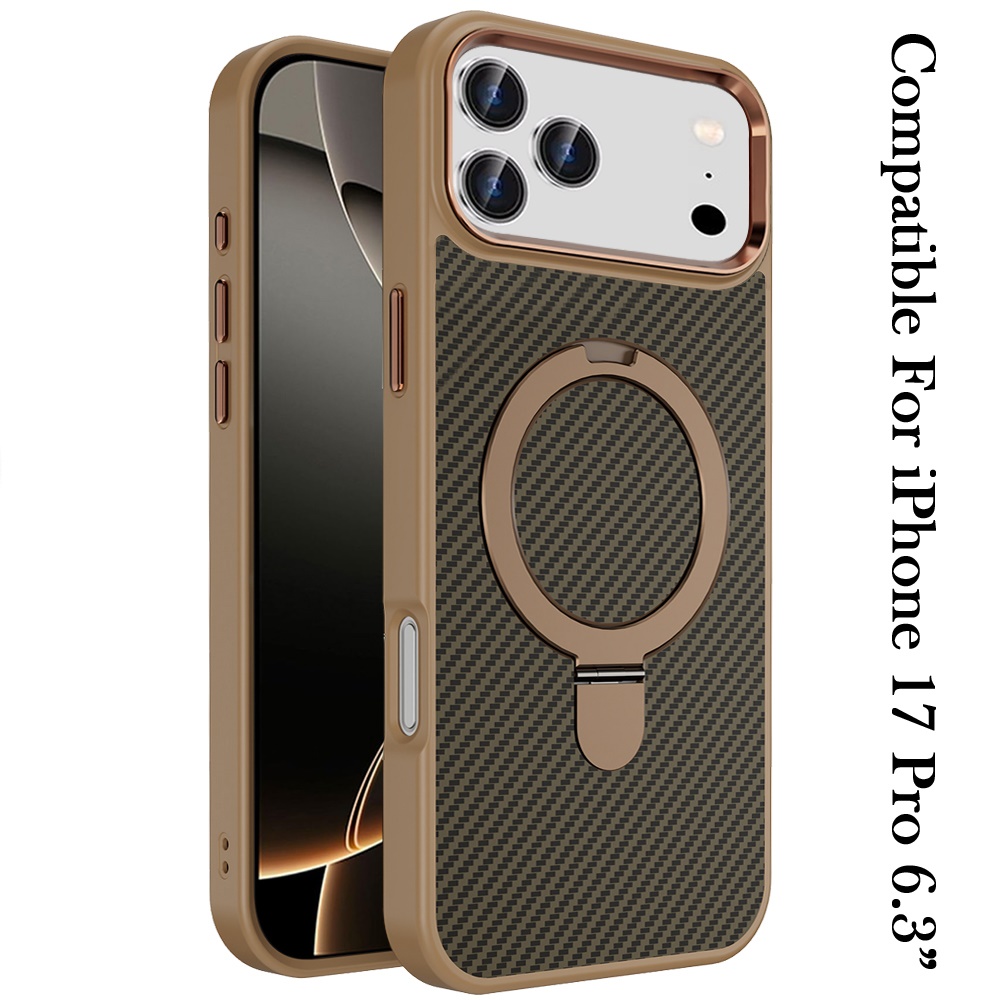 For iPhone 17 Pro Carbon Design [Magnetic Circle] with Ring Stand Hybrid Case - Brown