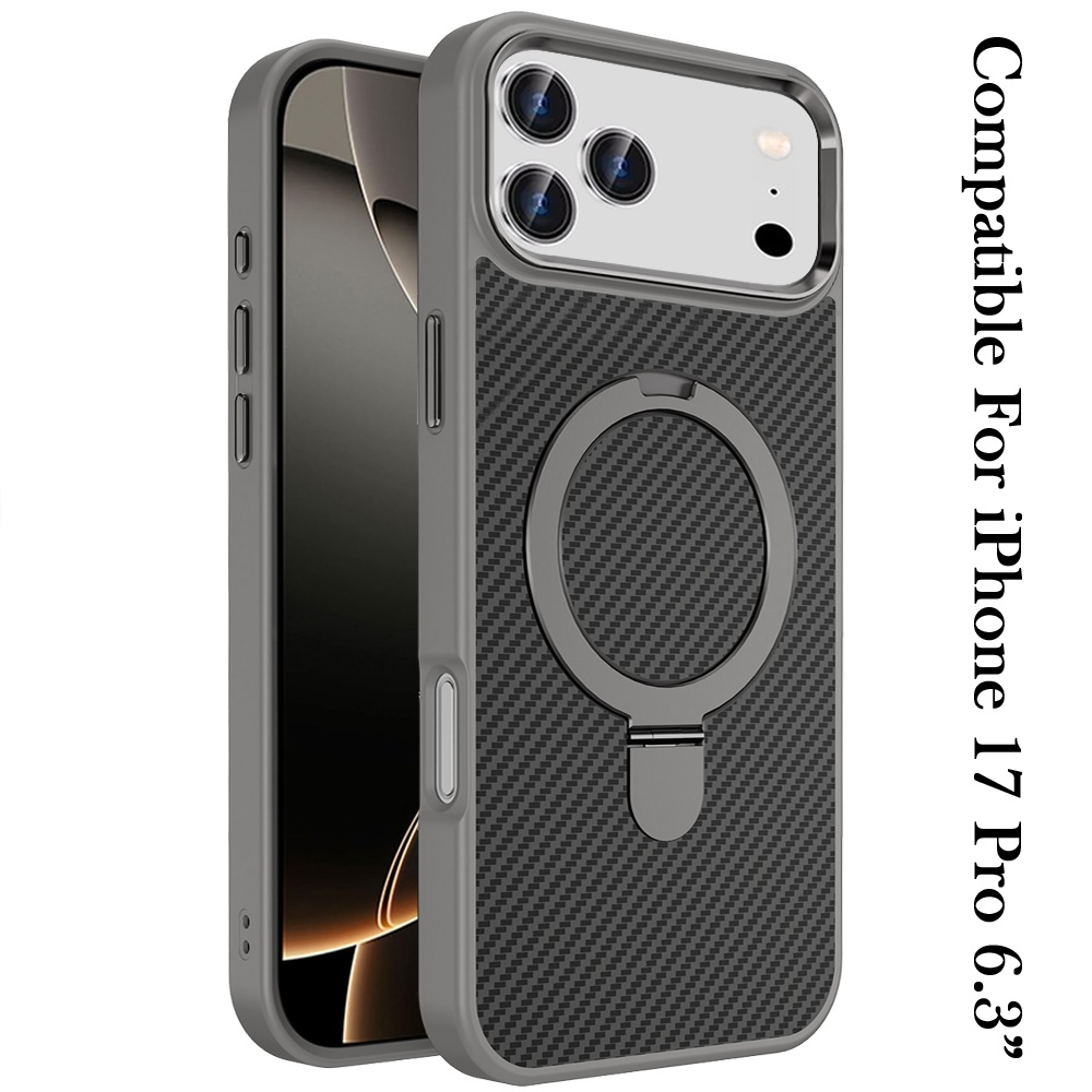 For iPhone 17 Pro Carbon Design [Magnetic Circle] with Ring Stand Hybrid Case - Gray