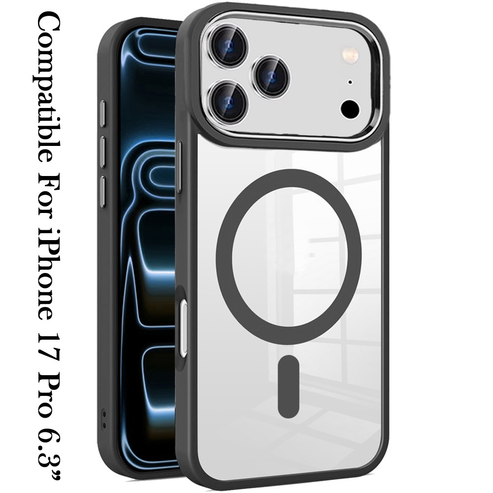 For iPhone 17 Pro Greatest Clear Acrylic [Magnetic Circle] ShockProof ToughThick Metal Button Hybrid - Black