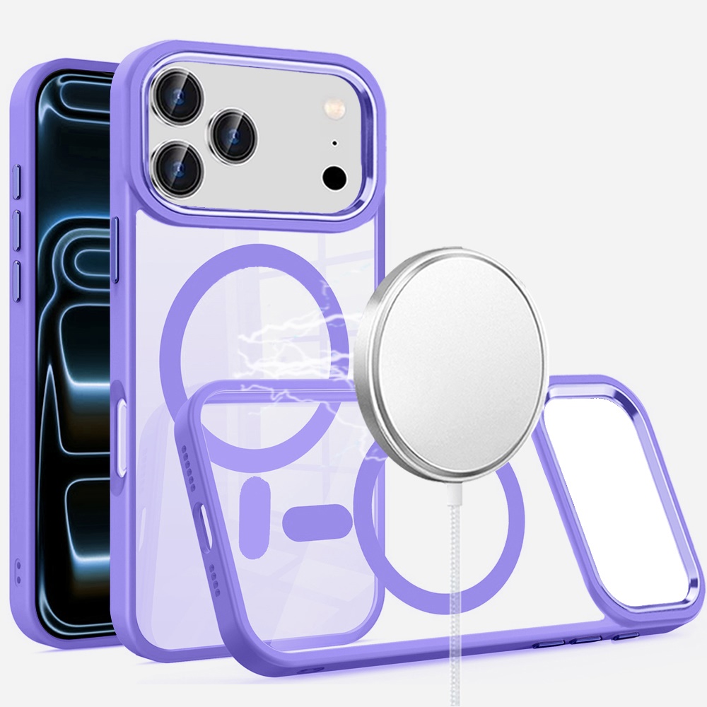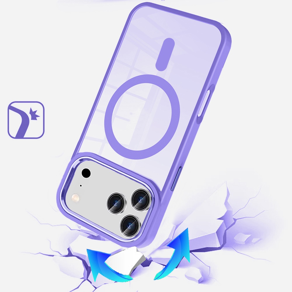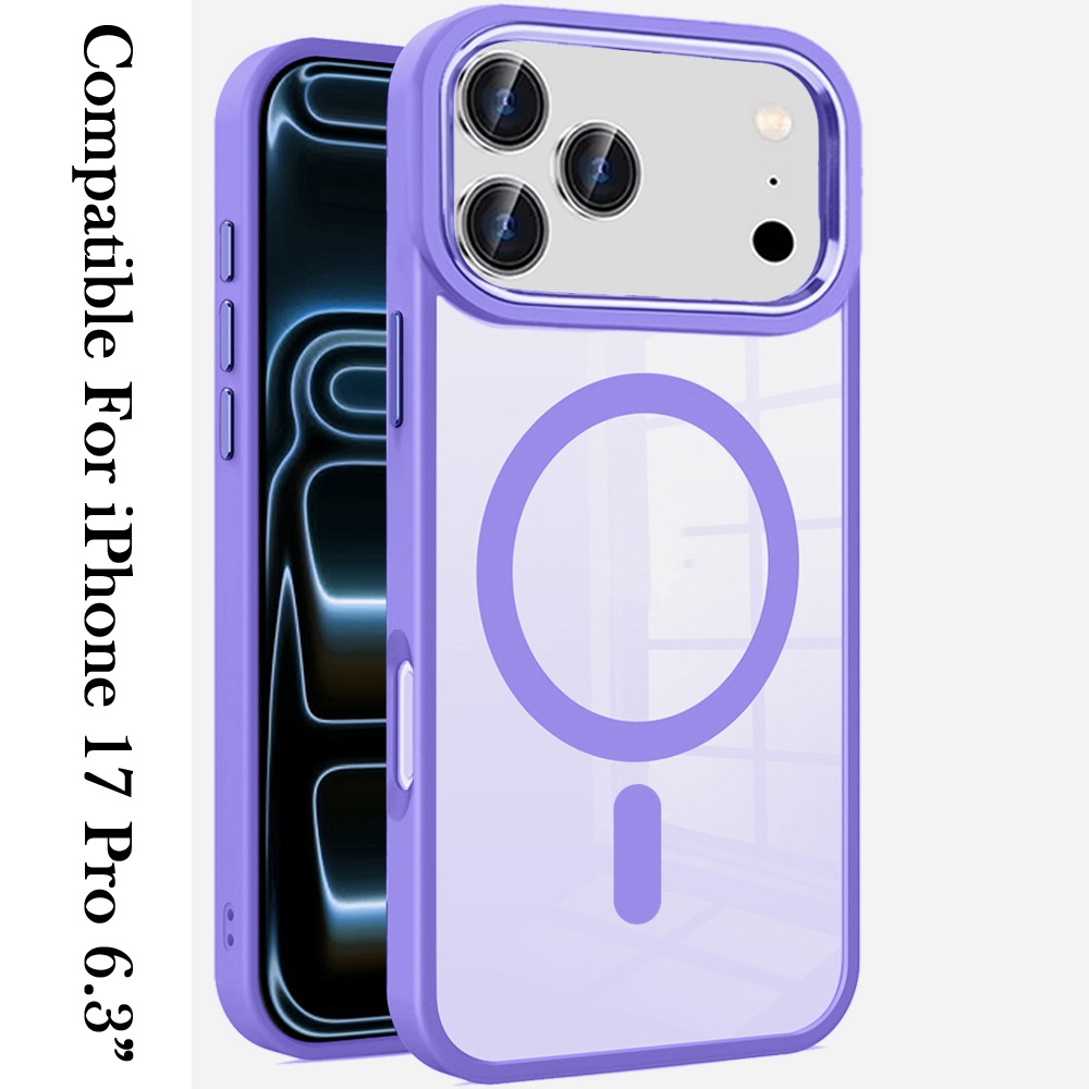 For iPhone 17 Pro Greatest Clear Acrylic [Magnetic Circle] ShockProof ToughThick Metal Button Hybrid - Light Blue