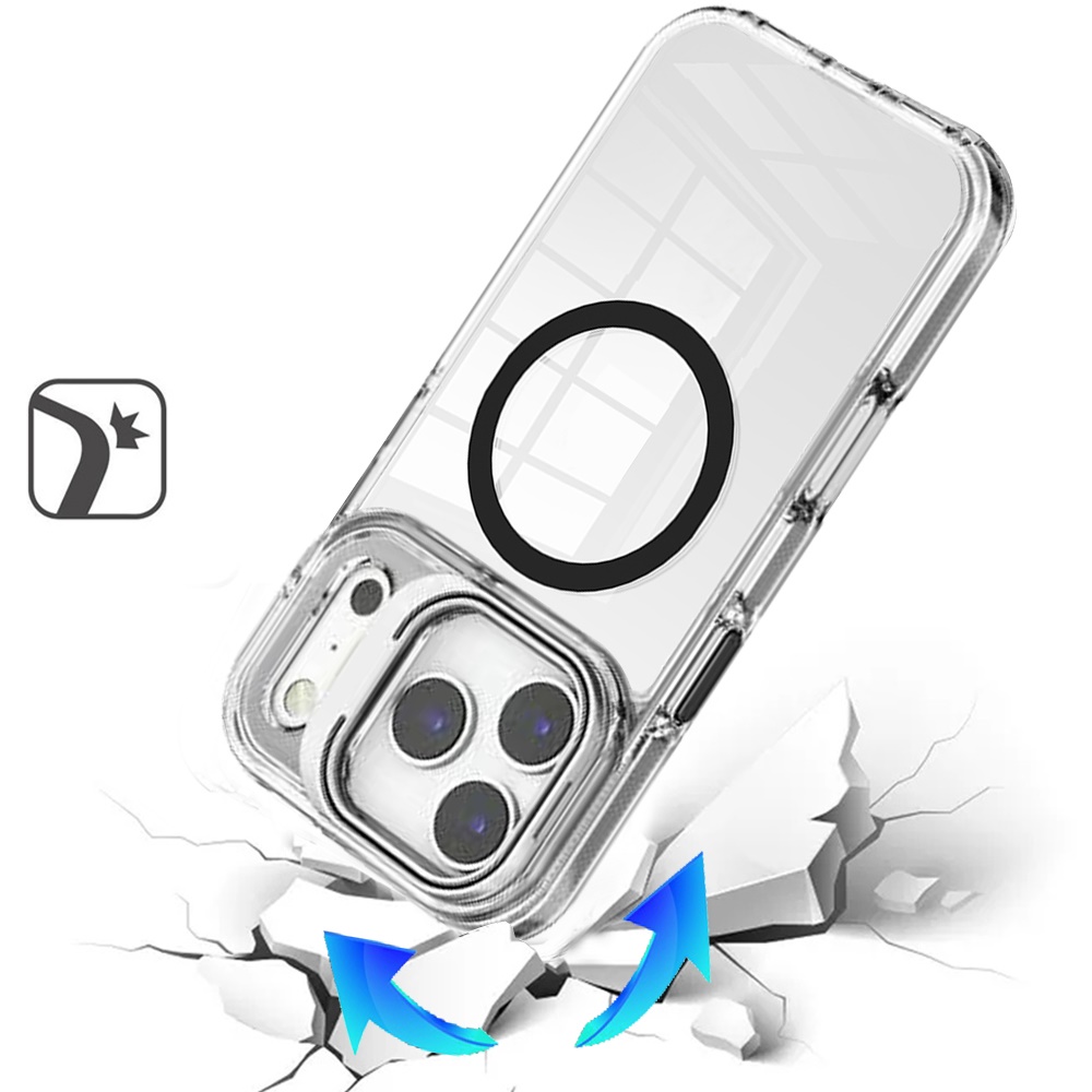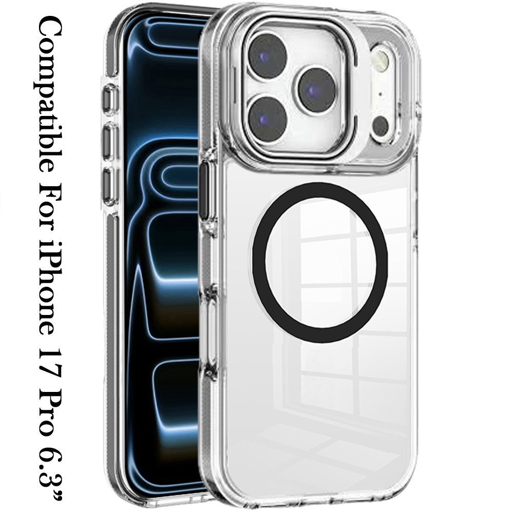 For iPhone 17 Pro Camera Metallic Stand [Magnetic Circle] Transparent Colorful Matching Edged Tough Hybrid Case - Black