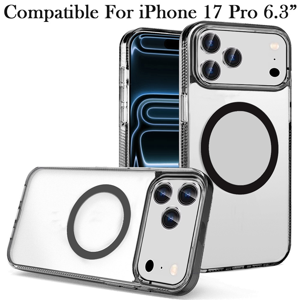 For iPhone 17 Pro PURE Transparent [Magnetic Circle] High Quality Ultra Thick Hybrid - Black