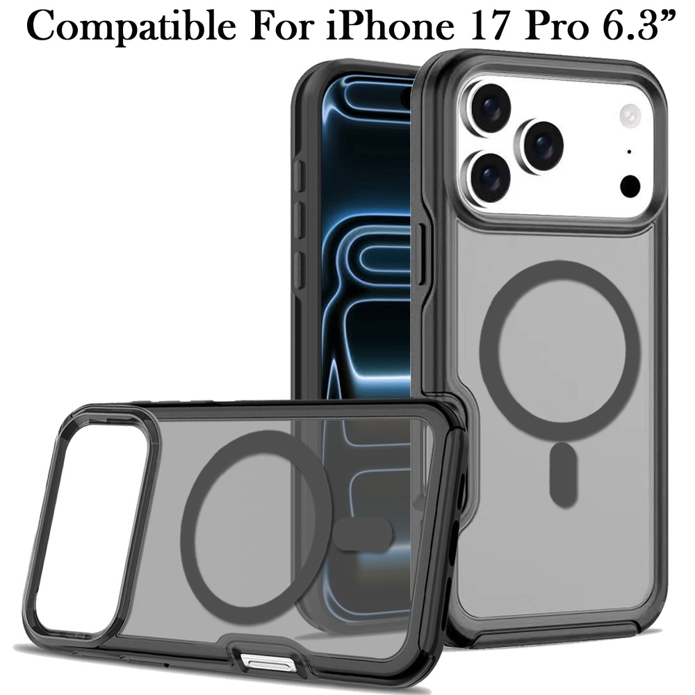 For iPhone 17 Pro Glossy Oil Premium Hybrid Case Cover - Black