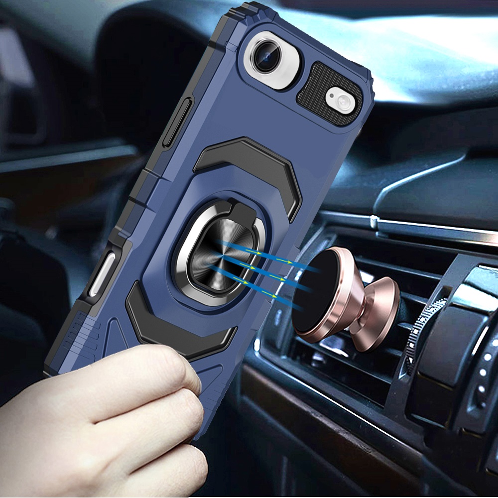 For iPhone 17 Air Robotic Hybrid with Magnetic Ring Stand Case Cover - Dark Blue