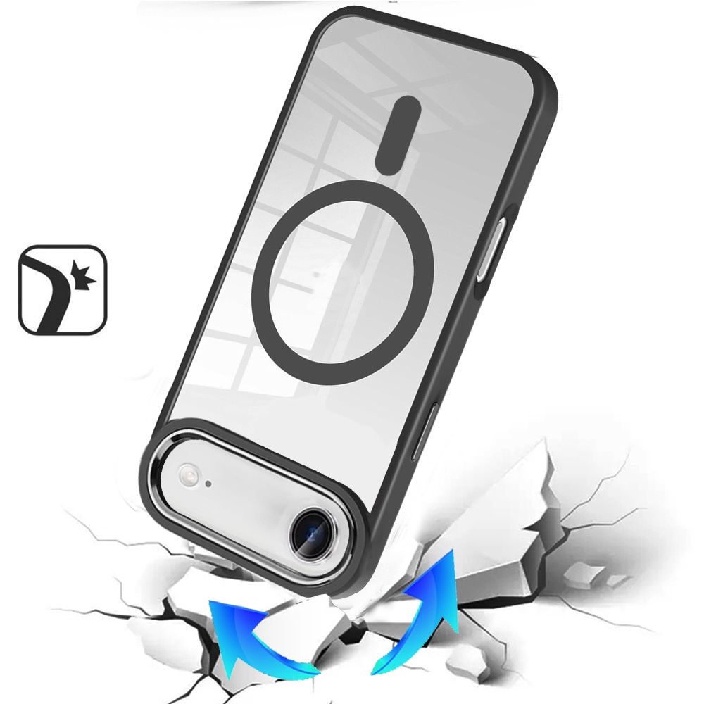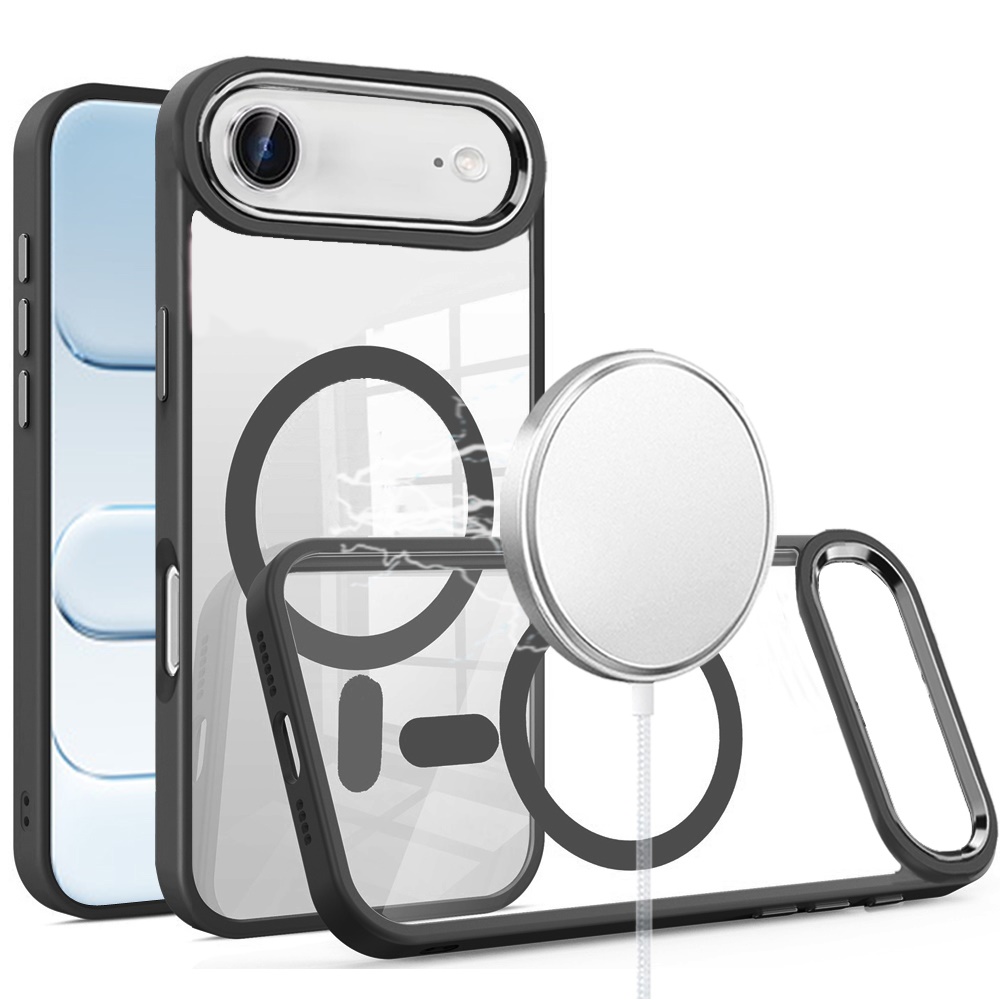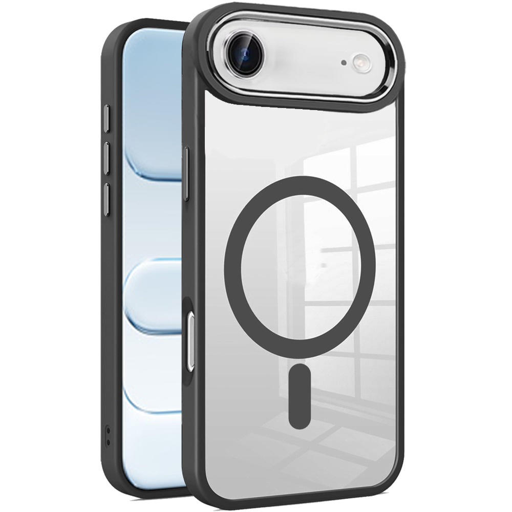 For iPhone 17 Air Greatest Clear Acrylic [Magnetic Circle] ShockProof ToughThick Metal Button Hybrid - Black