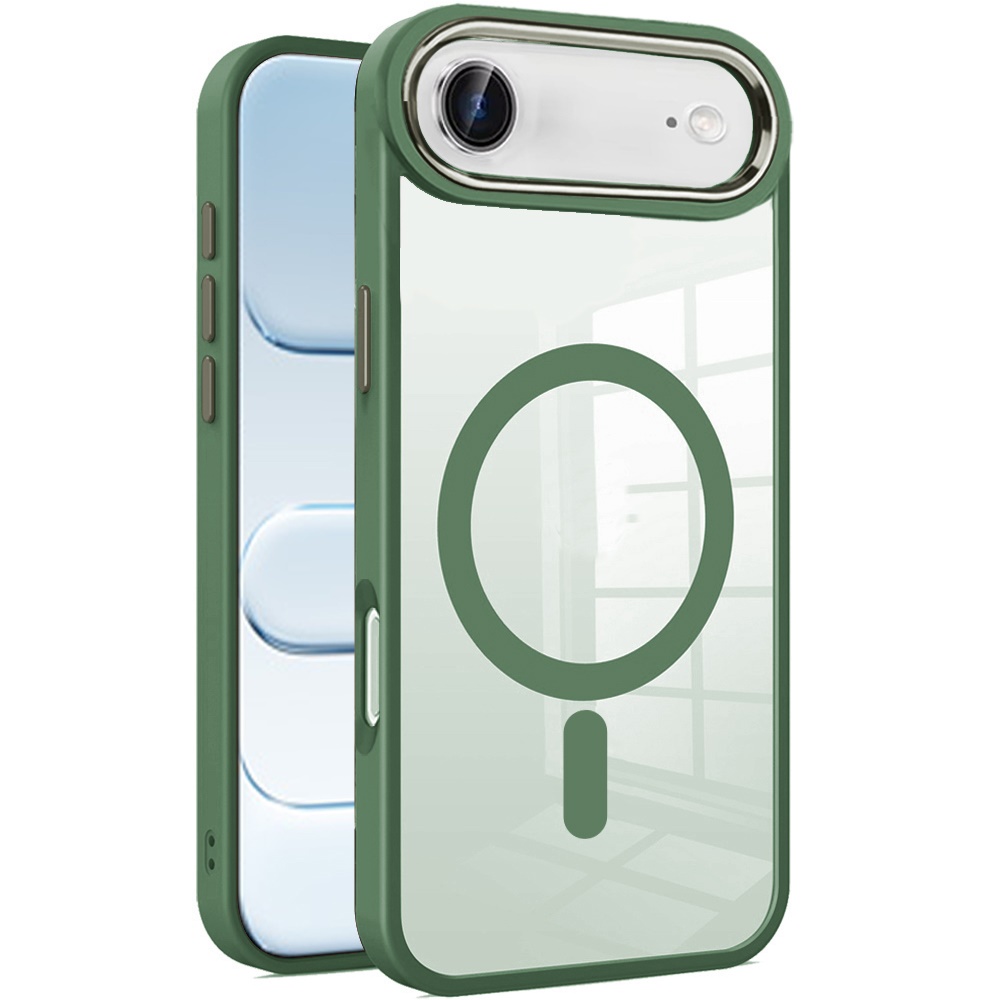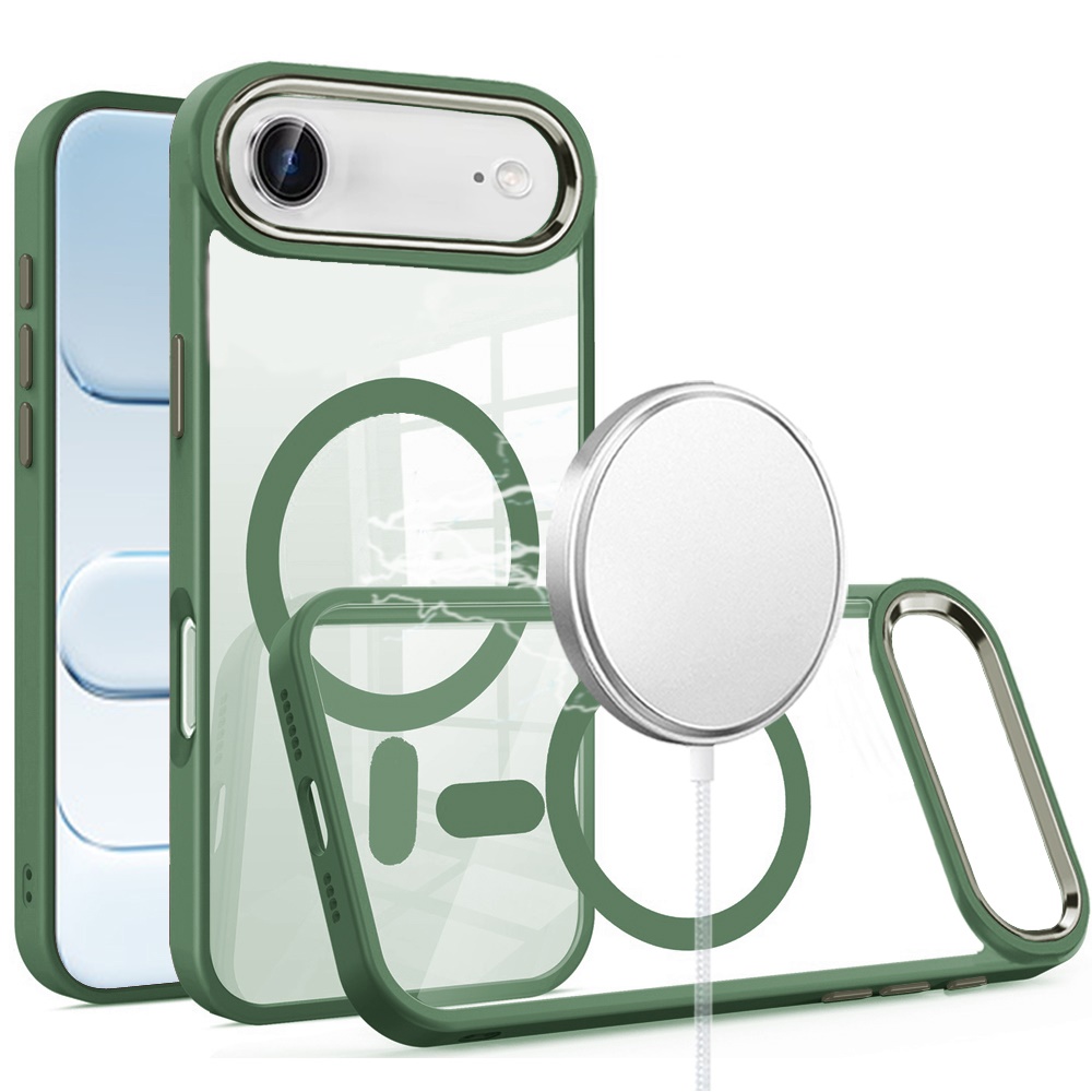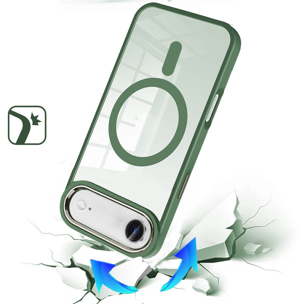 For iPhone 17 Air Greatest Clear Acrylic [Magnetic Circle] ShockProof ToughThick Metal Button Hybrid - Midnight Green