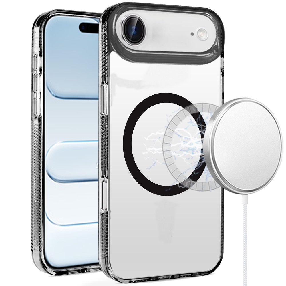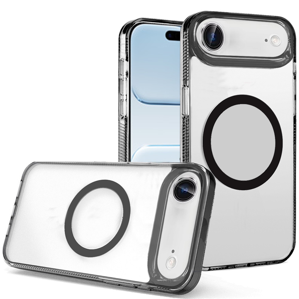 For iPhone 17 Air PURE Transparent [Magnetic Circle] High Quality Ultra Thick Hybrid - Black