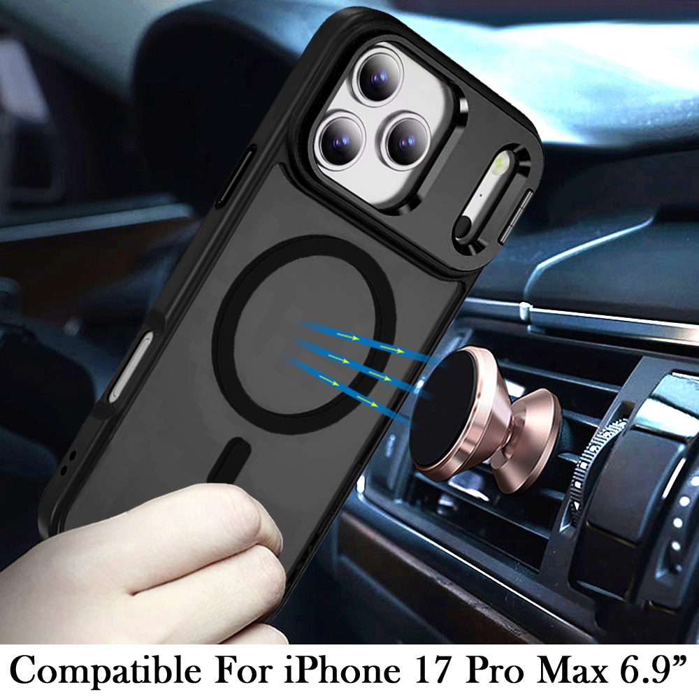For iPhone 17 Pro Max Fearless Tough HQ Metallic Hybrid with Camera Ring Stand [Magnetic Circle] Case - Black