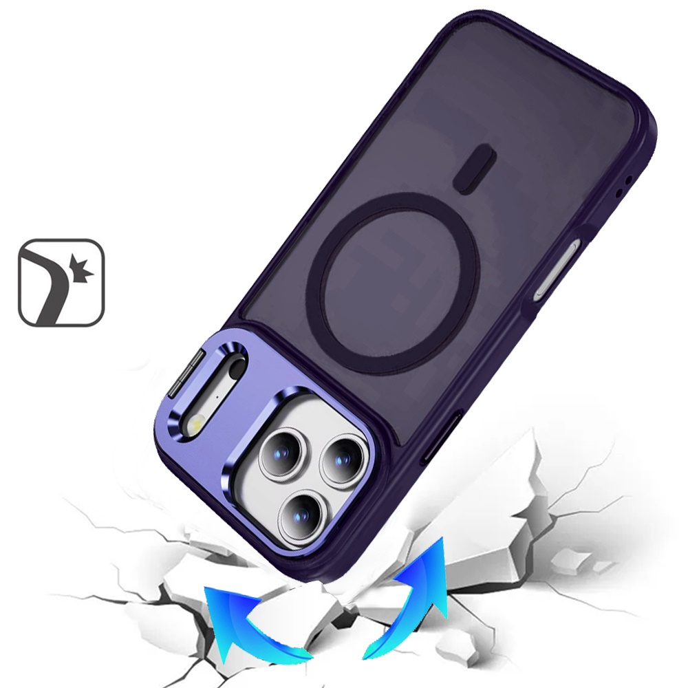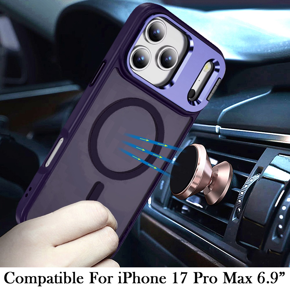 For iPhone 17 Pro Max Fearless Tough HQ Metallic Hybrid with Camera Ring Stand [Magnetic Circle] Case - Dark Purple