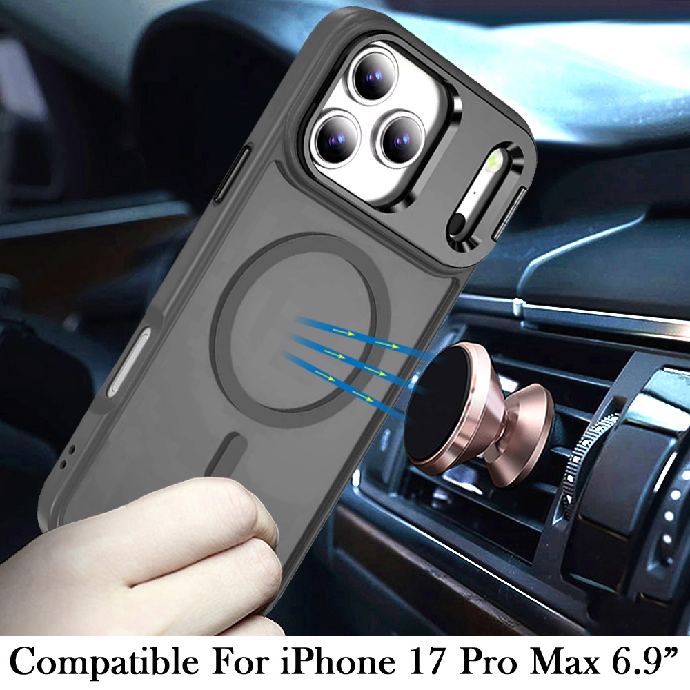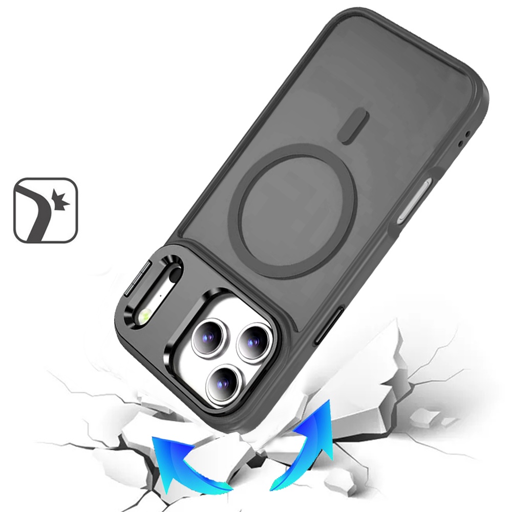 For iPhone 17 Pro Max Fearless Tough HQ Metallic Hybrid with Camera Ring Stand [Magnetic Circle] Case - Gray