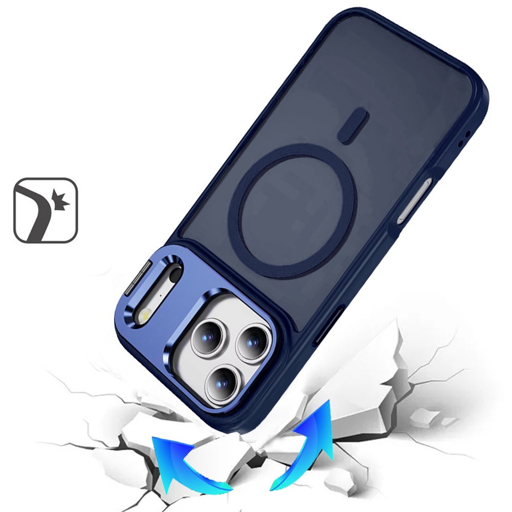 For iPhone 17 Pro Max Fearless Tough HQ Metallic Hybrid with Camera Ring Stand [Magnetic Circle] Case - Navy Blue
