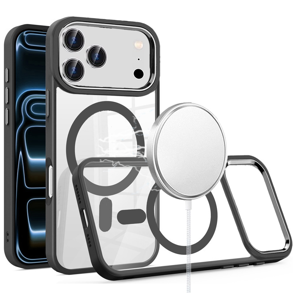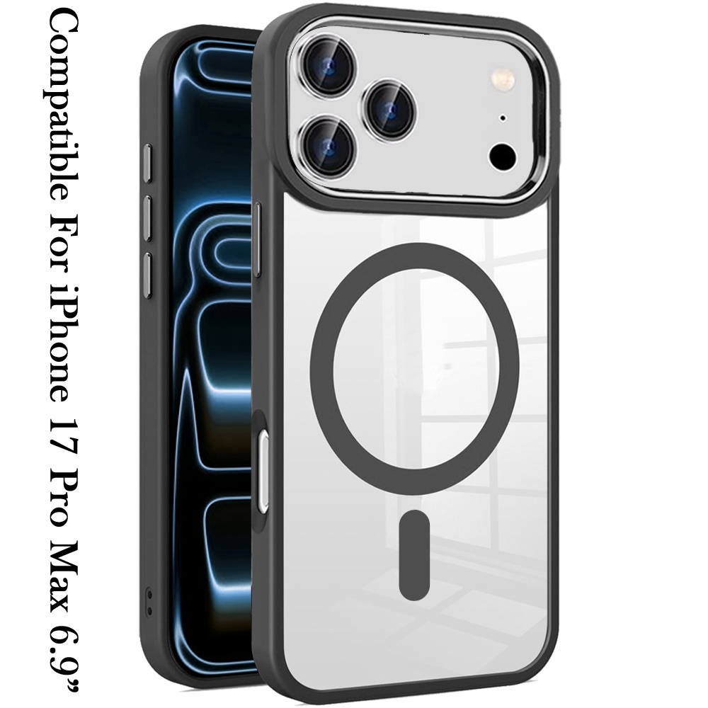 For iPhone 17 Pro Max Greatest Clear Acrylic [Magnetic Circle] ShockProof ToughThick Metal Button Hybrid - Black
