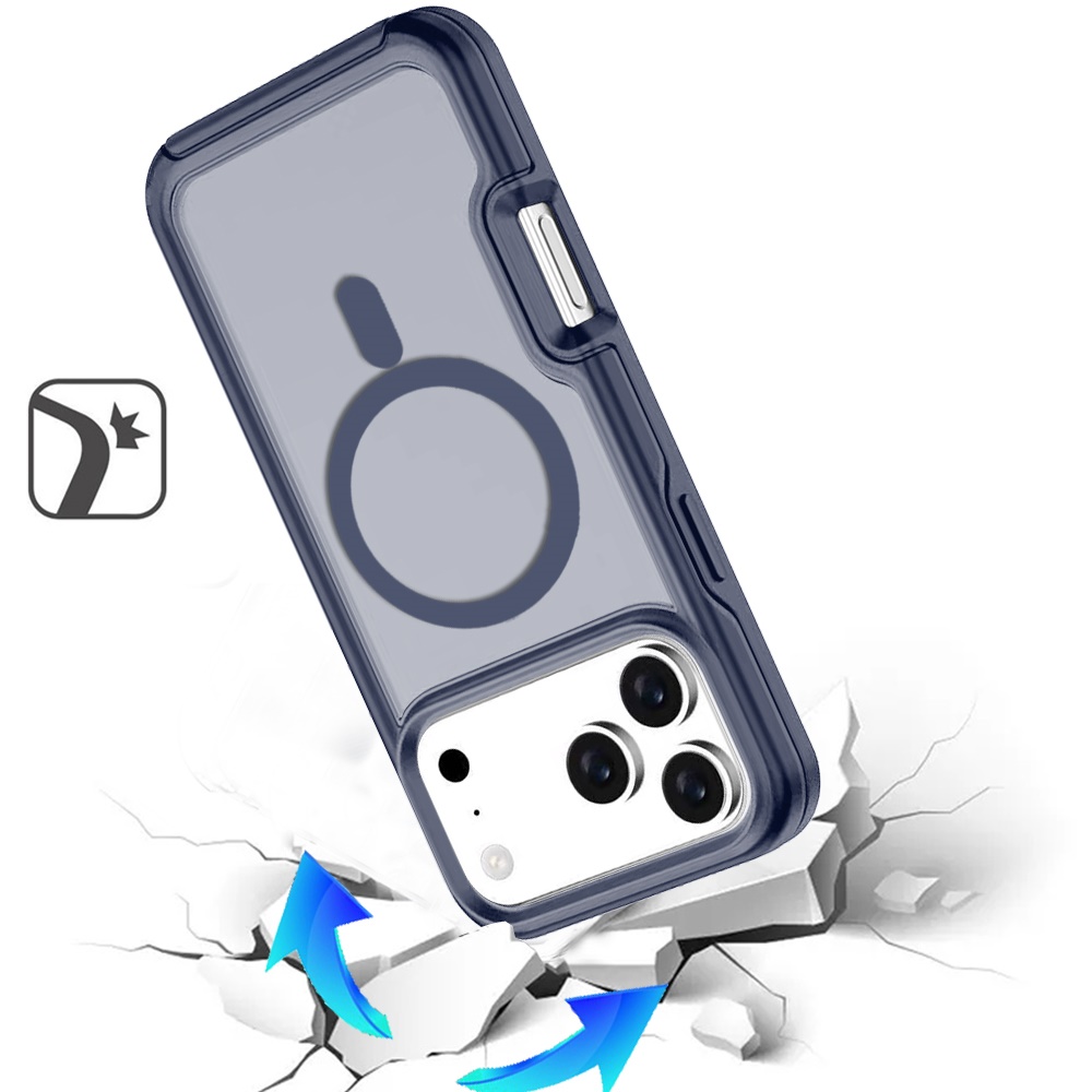 For iPhone 17 Pro Max Glossy Oil Premium Hybrid Case Cover - Dark Blue
