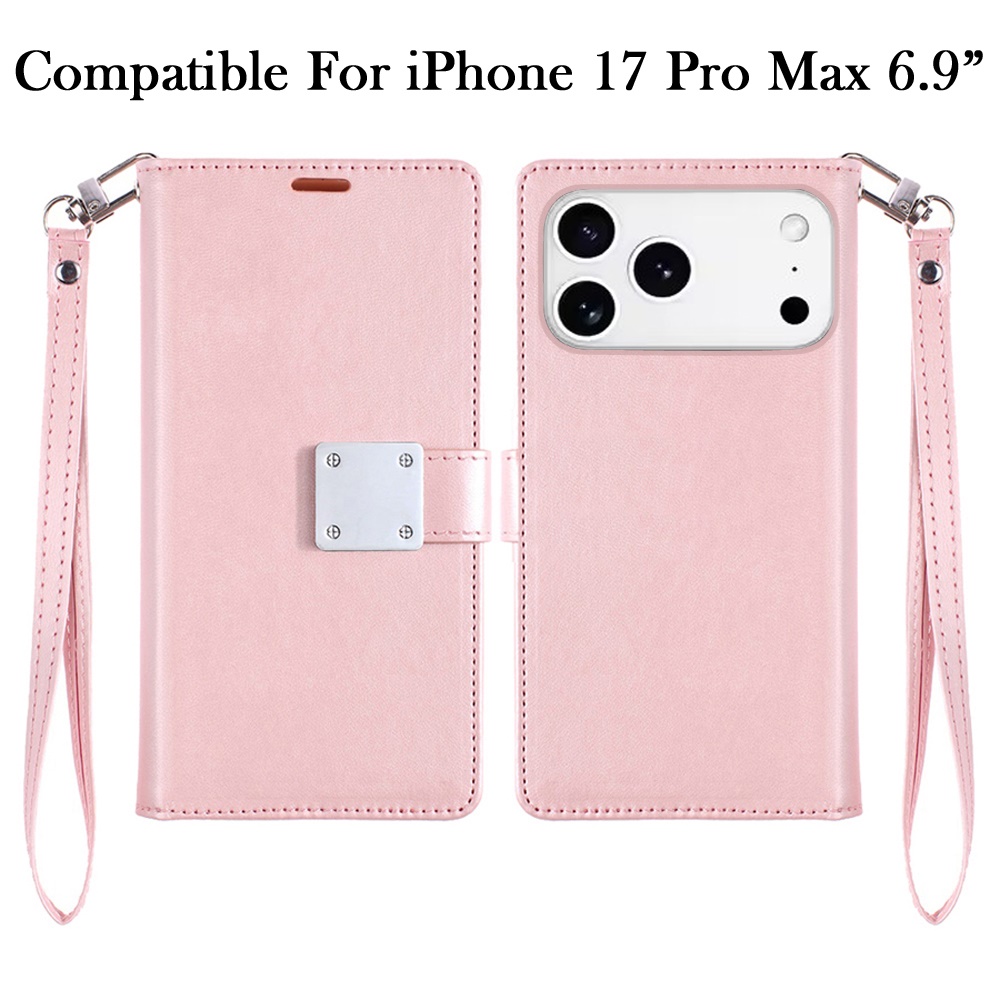 For iPhone 17 Pro Max Wallet ID Card Holder Case Cover - Rose Gold