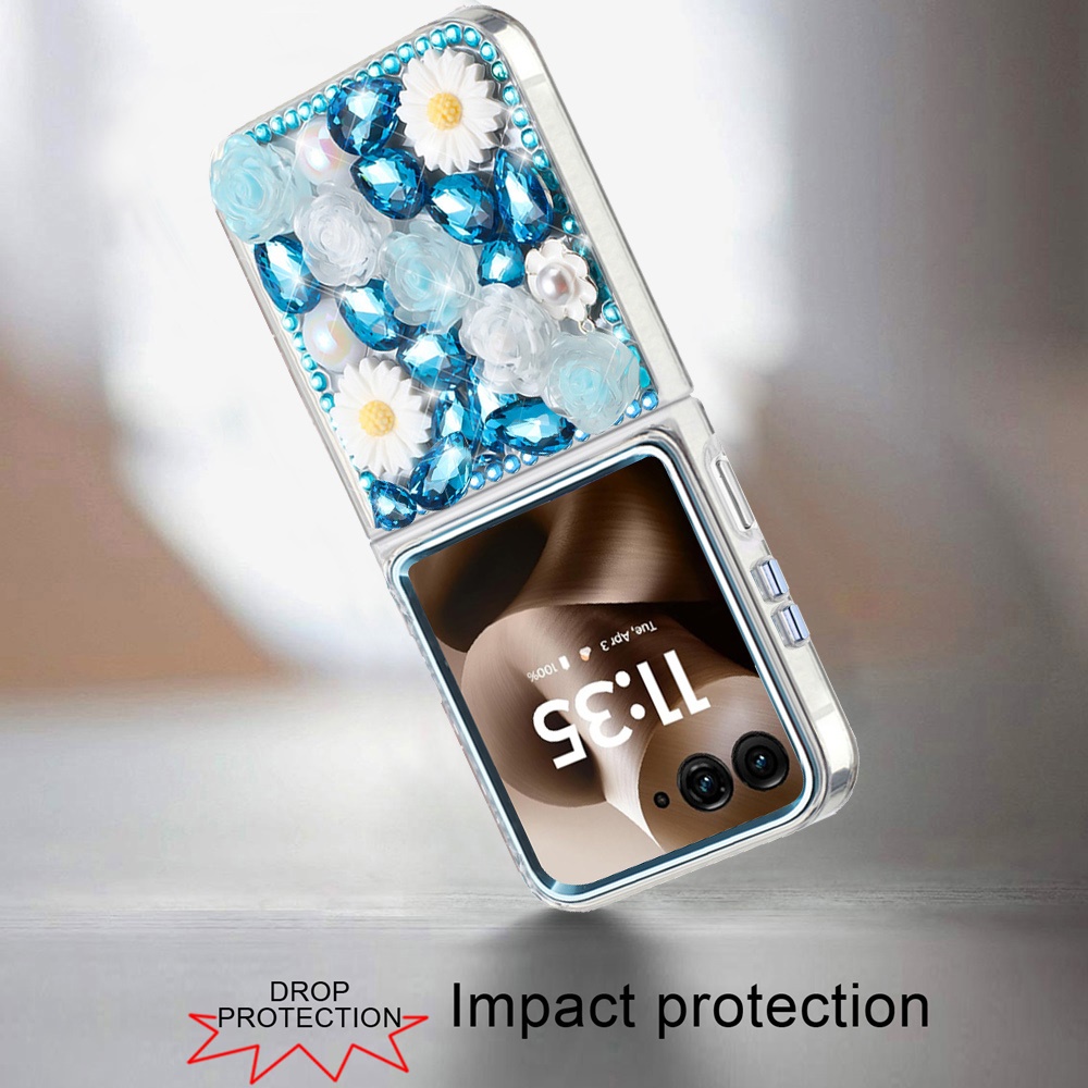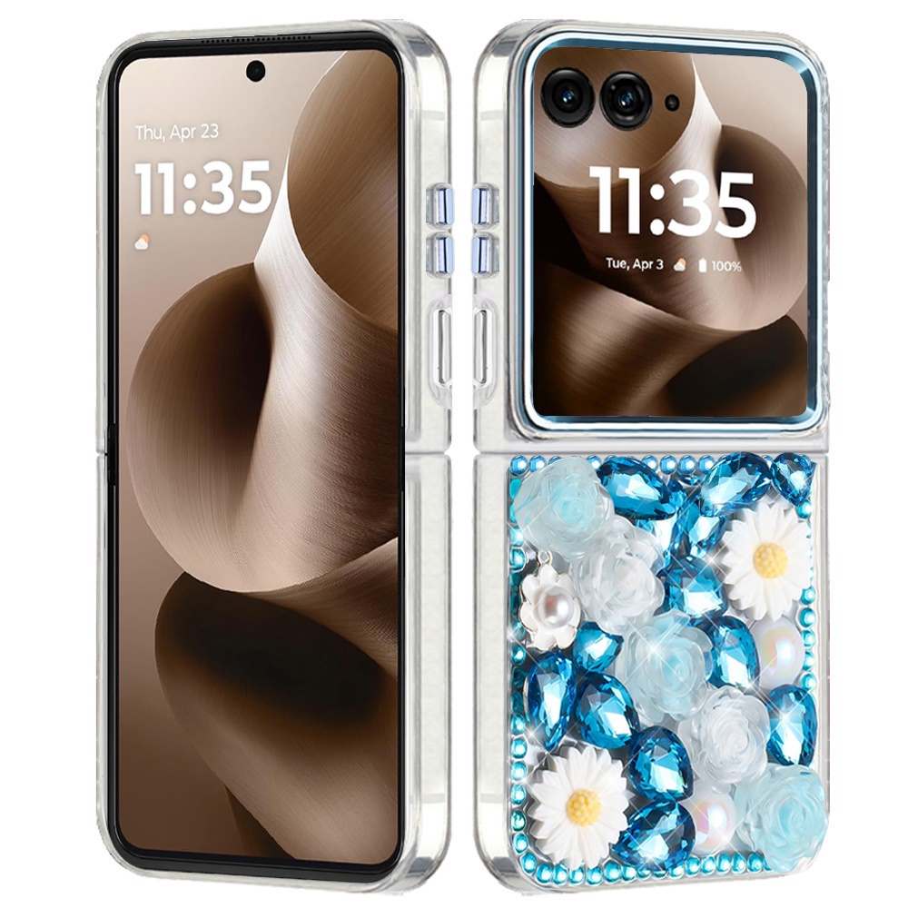 For Motorola Razr Ultra 2025 Spectacular Full Bling Stones Glitter HQ Hybrid Floral Series - Blue